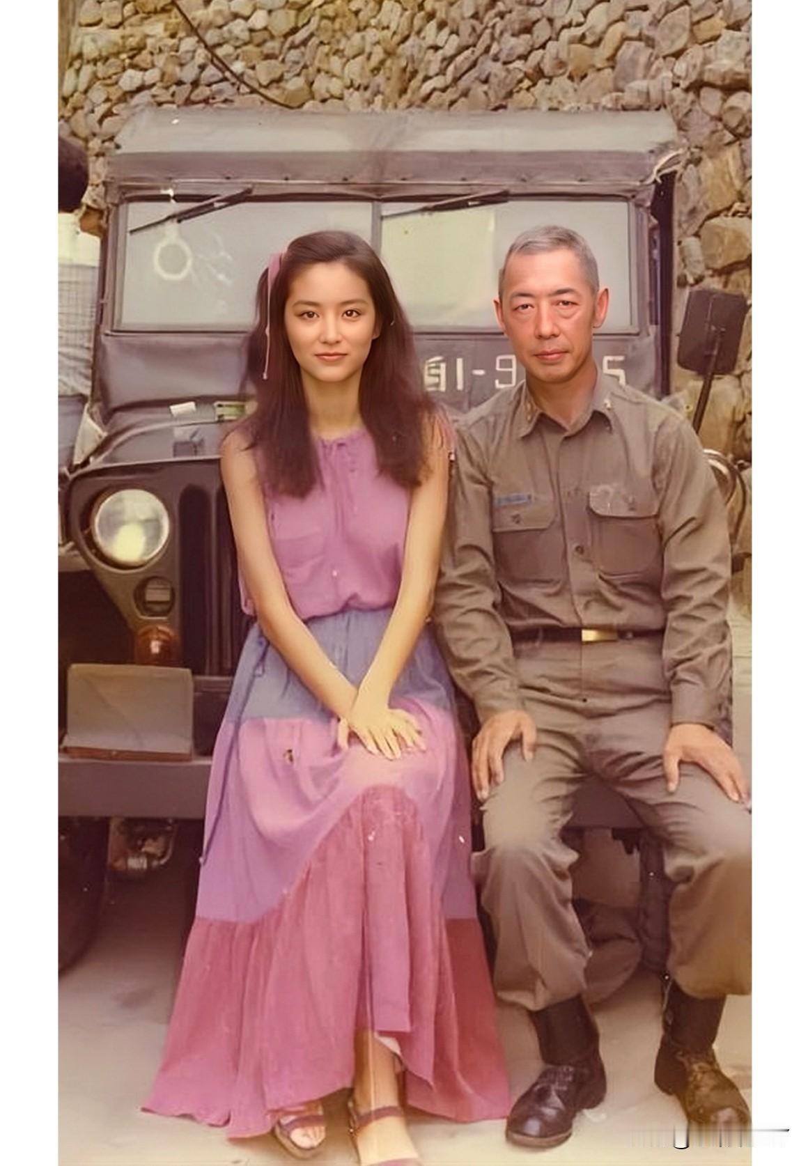 一九八零年,坐在车头上的林青霞与他的父亲。时年二十六岁,这样的颜值真是前无古人后无来者,仙女一样的存在,相信任何人看到都会挪不开眼!
