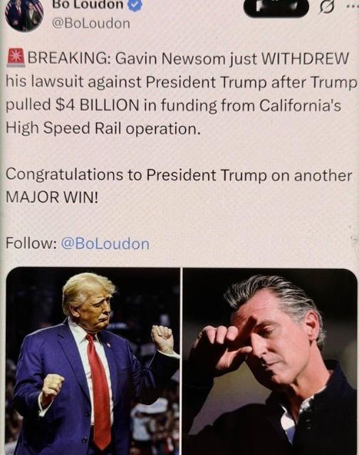 突发消息:在特朗普叫停对加州高铁项目的40亿美元拨款后,加文·纽森随即撤销了对特朗普总统的诉讼。祝贺特朗普总统再添一场重大胜利! 加州高铁这个项目从2008年选民批准就开始了,本来计划建一条从旧金山到洛杉矶的高速铁路,预算330亿美元,预计2020年完工。 可到现在17年过去了,花了上百亿美元,还没铺一条正式的高铁轨道,只在中央谷地建了些高架桥和导轨,成本飙到890亿到1280亿美元之间,通车至少推到2033年。很多人早就看不下去,叫它“通往虚无的火车”。 “通往虚无的火车”这个称呼,精准戳中了加州高铁项目的荒诞本质。17年的时间,足够让一个全新的城市框架成型,却没能让加州的高铁铺上一段能正式运营的轨道,这样的效率放在全球任何一个基建强国,都是难以想象的笑话。 项目最初的330亿美元预算,在2008年那个时间点,其实足以支撑起一条高标准高速铁路的建设。 当时加州政府给出的规划充满诱惑力,宣称这条高铁能将旧金山到洛杉矶的通行时间缩短到2小时40分钟,大幅缓解两大城市间的交通压力,还能带动沿线经济发展。选民们被这份蓝图打动,最终以52.3%的支持率通过了项目提案。 可提案通过后,加州政府的执行能力彻底暴露短板。首先是规划频繁变动,原定的线路多次修改,一会儿为了避开某个保护区调整走向,一会儿又因为沿线居民反对增加隧道工程,每一次变动都意味着工期延误和成本飙升。 其次是审批流程繁琐到极致,一个路段的施工许可,要经过联邦、州、市三级多个部门的审核,光前期手续就能耗上数年时间。 更离谱的是项目管理的混乱。审计机构后来披露,加州高铁管理局在项目初期就存在严重的预算估算失误,没有充分考虑土地征用、原材料涨价等潜在成本。 项目推进过程中,还出现了承包商层层转包、资金挪用等问题,部分工程的造价甚至比最初估算高出3倍以上。上百亿美元砸进去,最终只在人迹罕至的中央谷地建了些高架桥和导轨,完全达不到通车条件。 特朗普政府早就对这个“烂尾项目”忍无可忍。此前,联邦政府已经向加州高铁项目拨付了大量资金,可项目进展始终停滞不前,资金浪费情况触目惊心。此次特朗普果断叫停40亿美元拨款,本质上是对这种低效、混乱的治理模式说不。 加文·纽森之所以选择立即撤销诉讼,根本原因在于加州政府已经没有底气再和联邦政府抗衡。失去联邦拨款后,本就资金缺口巨大的加州高铁项目更是雪上加霜,加州政府自己根本无力承担后续数百亿美元的投入。 如果坚持诉讼,不仅大概率无法挽回拨款,还可能彻底恶化与联邦政府的关系,影响其他联邦资金的获取。权衡利弊后,纽森只能选择妥协,撤销诉讼也成了必然之举。 这场博弈的结局,看似是特朗普的胜利,实则暴露了美国基建领域的深层顽疾。长期以来,美国的基建项目都深陷“高成本、低效率”的怪圈,除了加州高铁,纽约的第二大道地铁延伸段、波士顿的绿线延长线等项目,都存在类似的工期延误、预算超支问题。 这些问题的根源,在于美国的政治体制和利益博弈。不同党派、不同层级的政府之间相互掣肘,利益集团为了自身利益不断干扰项目推进,繁琐的审批流程和过高的环保要求也成了基建项目的“绊脚石”。 更重要的是,美国的劳动力成本和建材成本长期居高不下,再加上项目管理中的腐败和浪费,让很多基建项目从一开始就注定难以成功。 加州高铁项目的烂尾困境,也给其他国家提了个醒:任何宏大的规划,都离不开高效的执行和严格的管理。没有务实的态度和强有力的治理能力,再美好的蓝图最终也只会沦为“通往虚无的幻想”。 特朗普此次叫停拨款、赢得博弈,不仅遏制了资金的进一步浪费,也给美国的基建治理敲响了警钟。希望这场胜利能让美国各级政府清醒过来,正视自身在基建领域的问题,否则未来还会有更多“加州高铁”这样的荒诞项目不断出现。