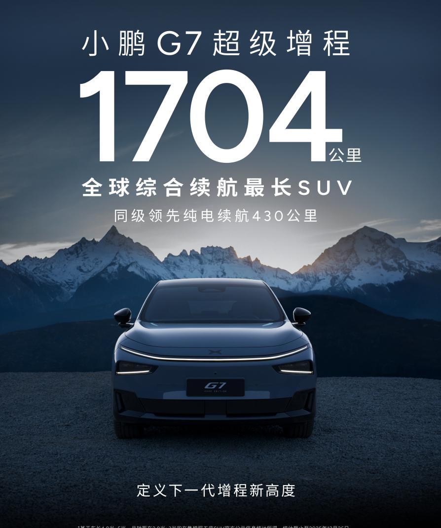 大早上被小鹏G7超级增程的宣传文案逗笑了,今天动力信息出来了,纯电续航430km,综合续航1704km,800V+5C,12分钟充电314公里,55.8度+60L油箱,现在增程大趋势都是400km+以上了,怕你不够用,还给配了个大油箱,续航真的很顶。小桌板、翻毛皮顶、副驾零重力座椅这些也会上车,舒适度上会比之前提升不少,明年一季度跟大伙见面,到时候拿这车做续航挑战的应该不少吧?【来自懂车帝车友圈】