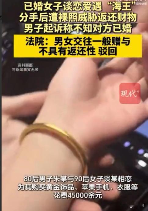 “想白嫖想疯了吧!”广东中山,男子疯狂追求已婚女子,不仅为其购买黄金首饰和苹果手机,还经常给她转账520、购买衣服,终于博得女子的欢心。相恋一段时间后,男子吃干抹净就想拍屁股走人,拿出女子的裸照威胁,要求女子返还恋爱期间的花销45000余元。遭到拒绝后,男子把女子告上法庭,声称他这是以结婚为目的的赠与,女子恶意隐瞒已婚事实,必须返还这些财物。法院审理发现,男子以同样的手段,同时和多名女性保持恋爱关系,最终作出的判决大快人心。 那天,朱某跟谭女士提出分手。朱某语气冷淡地说:“你一直不跟你老公离婚,我真的接受不了,我家里人也很介意。 我不可能找一个二婚还带孩子的女人过日子。之前我给你转的钱、给你买的东西,你都还给我吧,毕竟我挣钱也不容易。” 话音刚落,谭某的脸一下子沉了下来。她盯着朱某,怒目而视:“你要不要脸?那些钱、那些东西,都是你自愿给的,你凭什么现在要回去?我就不还!” 朱某闻言,嘴角一扯,露出一丝冷笑。 他不再争辩感情对错,而是慢慢拿出手机,在屏幕上点了几下,然后把手机往桌上一推:“你确定不还?我这里可有你出轨的照片。 你不想让你老公知道吧?你要是不还,我就把照片打印出来,送到你老公公司,再发给你公婆。” 这句话像一记重锤,狠狠砸在谭某心上。她脸色瞬间煞白,手指不自觉地攥紧了包带。她怎么也没想到,曾经口口声声说“心疼她、保护她”的人,会在分手时露出这样狰狞的一面。 那一刻,谭某第一次意识到,自己也许从一开始就掉进了一个精心设计的陷阱。 回想起两人相识的过程,一切似乎早有预兆。朱某最初出现时,总是温和有礼,聊天内容从不越界。 他懂得倾听,也擅长安慰,几句话就能说进人心里。谭某婚姻不顺,长期缺乏理解和陪伴,在朱某的嘘寒问暖中,渐渐放松了警惕。 后来,朱某开始频繁转账。“别有压力,拿去买点自己喜欢的东西。”“520而已,图个开心。” 每一笔钱都不算大,却恰到好处,让人难以拒绝。再后来,是手机、首饰、衣服,一样样堆积起来,感情也在不知不觉中越了界。 可现在,所有的温柔都被撕碎,只剩下赤裸裸的算计。 “你这是敲诈!”谭某咬着牙说。 “敲诈?”朱某嗤笑一声,“我只是拿回属于我的东西。要么还钱,要么后果你自己掂量。” 两人不欢而散。回到家后,谭某一夜未眠。恐惧、愤怒、羞愧交织在一起,让她几乎喘不过气。她明白,一旦这些照片真的被曝光,她的家庭、工作、名声都会彻底崩塌。 几天后,朱某再次联系她,语气比之前更加咄咄逼人,明确列出一张清单,要求返还共计45000余元,否则就“按他说的来”。谭某这次没有妥协,她意识到,一味退让只会被逼到更绝望的境地。 在朋友的劝说下,谭某选择报警并咨询律师。很快,朱某却抢先一步,把她告上了法庭。 庭审中,朱某表现得异常“委屈”。他一再强调自己是“真心付出”“以结婚为目的”,声称谭某隐瞒已婚事实,骗取财物,才导致自己人财两空。 他把转账记录、购物凭证一一摆在桌上,试图证明自己的“损失”。 然而,随着证据逐步展开,事情开始朝着朱某意料之外的方向发展。 法官发现,朱某提供的聊天记录存在明显删改,许多关键语句前后不连贯;而那些转账,大多没有备注用途,金额也以表达爱意为主,并不存在明确的借贷或返还约定。 更重要的是,经调查核实,朱某在与谭某交往期间,还同时与多名女性保持暧昧甚至恋爱关系,手法如出一辙。 面对这一事实,朱某当庭语塞,再难自圆其说。 法院最终认定:朱某所谓“以结婚为目的的赠与”缺乏事实基础,其索要返还财物的主张不予支持。 同时,其以隐私照片相威胁的行为,已严重侵犯他人合法权益,相关线索依法移送处理。