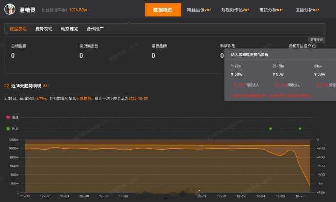 【温精灵商标已被抢注】温精灵60秒视频报价50万近日,疑似前合伙人发布视频控诉温精灵,引发网友讨论。温精灵第三方数据显示,温精灵近30日掉粉6.79万。商业化水平显示,其1-20s、21-60s、60s以上视频广告报价均为50万。天眼查知识产权信息显示,“温精灵”已被多方申请注册为商标,申请人包括嘉兴市某贸易有限公司、上海某食品有限公司等,国际分类涉及布料床单、广告销售等,当前商标状态多为已注册。