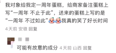 我对象给我定一周年蛋糕,给商家备注蛋糕上写"一周年不止于此",送来的蛋糕上写的是"一周年不过如此"我真的笑了好长时间