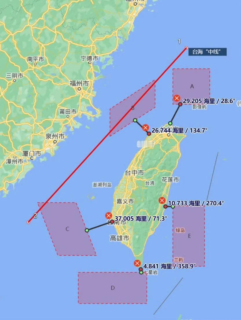 这一次演习的五个区域的设置极具针对性,也是离台岛最近的一次,图上直观的展示了各区