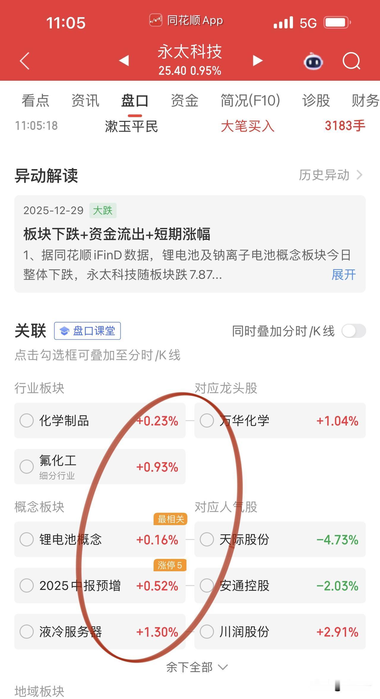 电池板块全面翻红! 天齐锂业、大中矿业领涨资源股, 赣锋锂业的跌幅也收窄; 六氟磷酸锂方向, 永太科技、新宙邦、多氟多翻红, 这个方向的逻辑很硬—钱已经赚到口袋里。 电池核心材料, 正极材料龙头湖南裕能, 负极材料中科电气, 杉杉股份等机会都跌出来了。 电池设备龙头先导智能看着头大, 一看评论区太热闹了, 就知道问题出在哪了! 现在量化指标是包括情绪指数的。 欣旺达算利空出尽了吧, 三千的逻辑是市场大把可选, 为什么非要堵这种不确定性呢? 持仓全绿纪念一下^_^ …