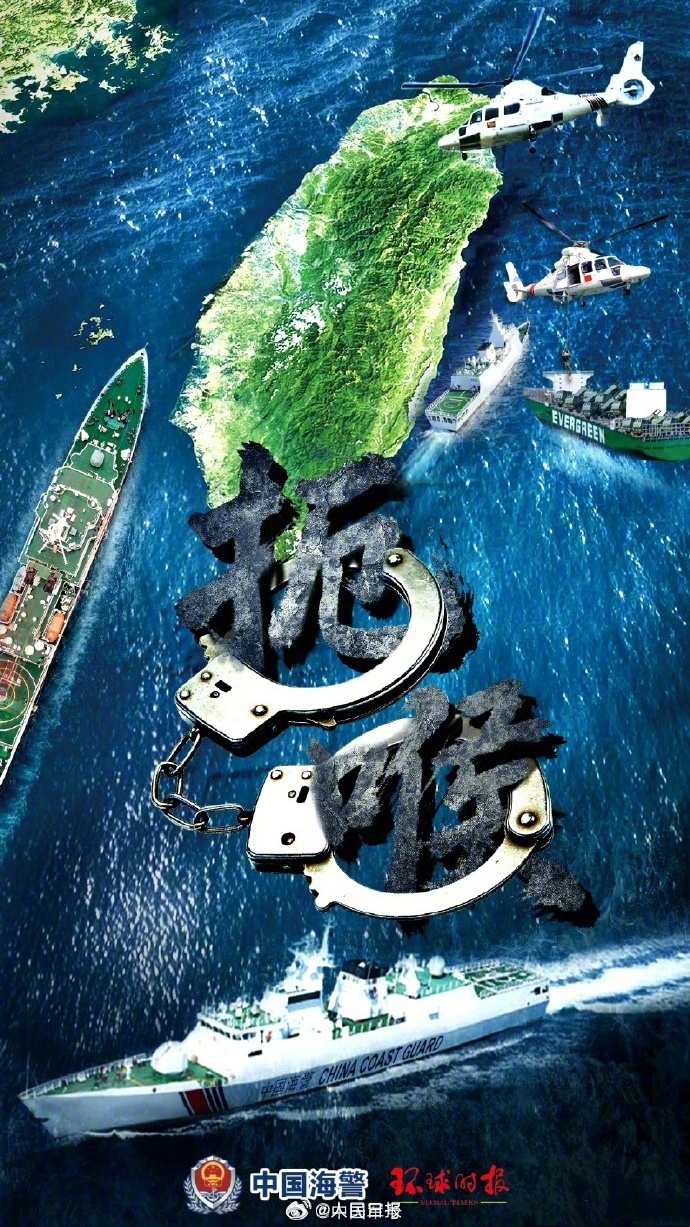 #中国海警海报扼喉#【中国海警局发布台岛及其附属岛屿执法巡查主题海报《扼喉》】扼台岛海上咽喉,断“台独”外援妄想,发布台岛及其附属岛屿执法巡查主题海报《扼喉》。#扼台岛海上咽喉断台独外援妄想##两个拿锤的手上都印有中国国旗#