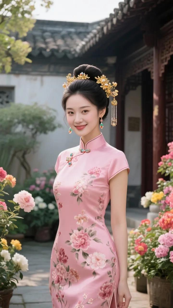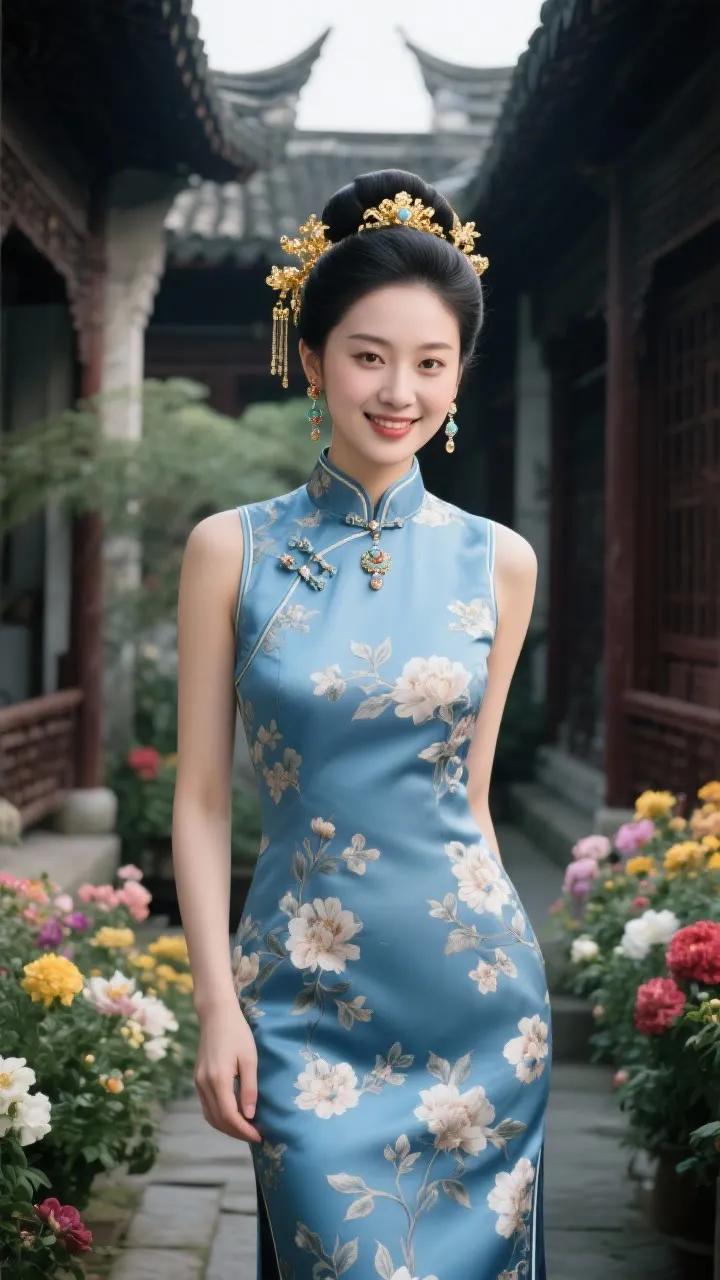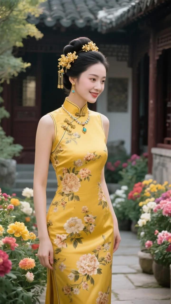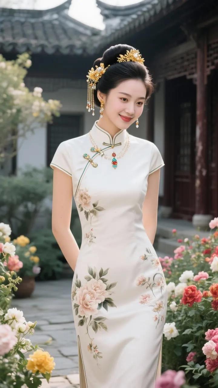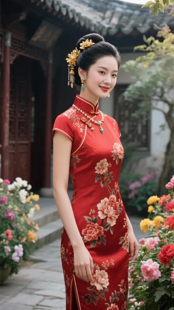 古典旗袍,花间漫步,优雅气质,尽显东方韵味。
