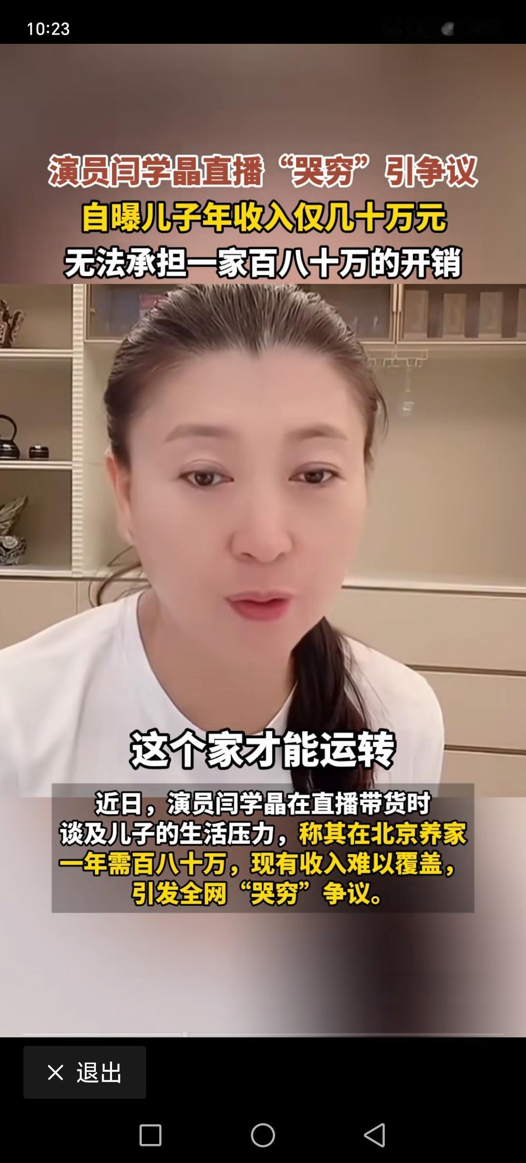 闫学晶直播带货,帮助儿子。儿子年收入几十万,根本承担不起家庭八十万的支出。有的人