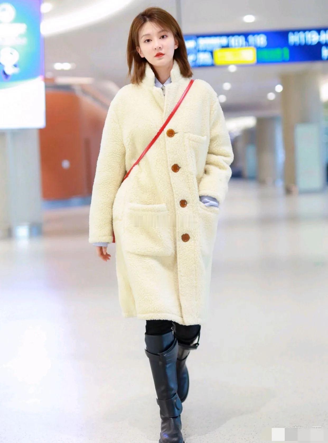 乔欣真是行走的衣架子!软糯羊羔绒大衣配长筒靴,又暖又可爱,气场还全开,时髦高级,轻松穿出冬日摩登感,吸睛得很!