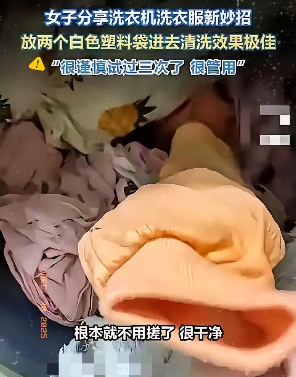 “解释不清了!”山东一女子,用洗衣机洗衣服时,意外发现洗过的衣服特别干净,连边角油渍都洗掉了!她有点纳闷,却突然发现滚筒里不知何时混进去了一个白色塑料袋,而这就是关键所在! 这哪是什么玄学,分明是生活里藏着的“物理去污小智慧”!冬天衣物油渍难洗,核心就是洗衣机里的摩擦不够,边角贴桶壁刷不到。塑料袋在滚筒里乱撞,既像额外的“搓澡巾”增加摩擦力,又能翻开贴住的衣物,让洗涤剂和水流钻进去。 更妙的是,塑料袋带的静电能吸走细小毛絮,PE材质还能靠“相似相溶”带走油污,双管齐下才洗得这么干净。不过得选无印刷的白色PE袋,不然容易掉色或碎成渣堵滤网。生活里的小意外往往藏着大技巧,你还试过哪些洗衣服的“神操作”?评论区分享下!