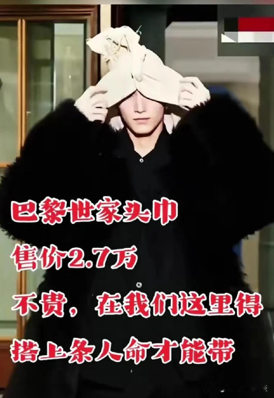 真搞不懂西方人的艺术。这是巴黎世家2.7万一顶帽子,看着倒像一块白布缝起来的。这要是放在中国免费也不能要,谁要是不懂事戴上,他爹妈非得把他打出去不行你信不信?在中国这叫披麻戴孝,他们竟然当做奢侈品来用,搞不懂搞不懂。 真的好看吗?巴黎世家新头巾