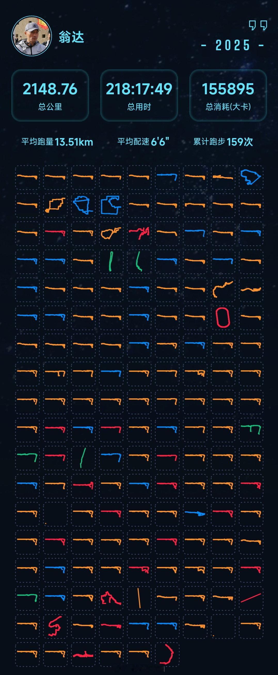 跑过黄埔马拉松就决定2025年在跑步这事儿上摆烂几天好了。又是保持慢摇但出勤率不太差的一年,没有大伤痛也没耽误喝酒这点比较满意。跑了五场全马,要不是黄埔马拉松坡太多估计就全都325-330区间完成了。年头算计着广州境内马拉松应该集中在一个月内都报上名,然后其中挑两场再搞搞事情,结果就是既没比赛可报又有新规把我搞事情的念头限制死了。明年么,要跑我的第50场全马,不知道是哪场(要是无锡马中签就是无锡了)。有合适机会回到越野赛场。再见2025 年终总结 马拉松