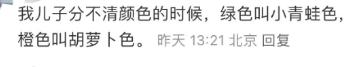 我儿子分不清颜色的时候,绿色叫小青蛙色,橙色叫胡萝卜色