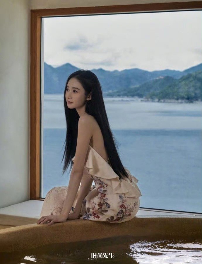 视觉中国拍的Lisa穿繁花紧身长裙照