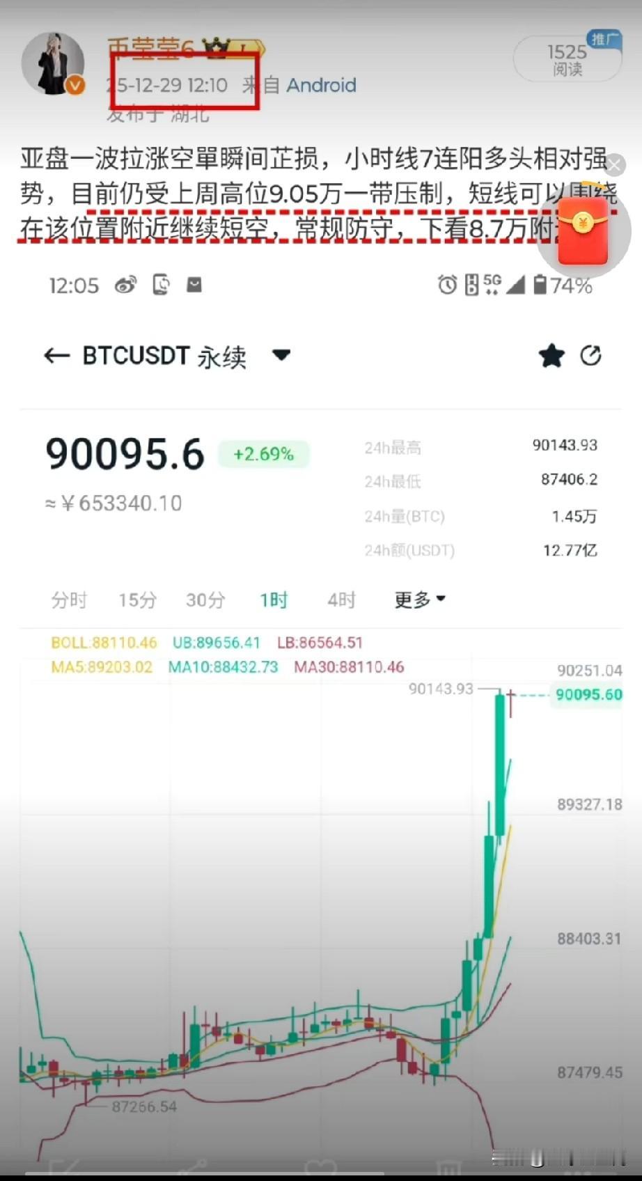 地缘局势缓和,黄金白银暴跌,比特币趁机上涨突破9万关口。继8连阳之后,转而4连阴,阴跌下行但整体依然处于大级别的调整之中。 近半个月大饼涨涨跌跌一直处于8.5-9万区域反复拉锯,欲破未破,牵扯心态,接下来继续关注9万一带阻力,空單可继续持有……