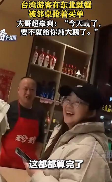 格局打开了!两名台湾女生到齐齐哈尔旅游,在餐厅吃晚饭准备买单时,却被老板告知:你们这桌都算完了!她们这才知道,原来单子被邻桌几位大哥大姐给买了,在表达感谢时,一位大哥表示:两岸一家亲,回祖国,天天拥抱你们! 周五夜晚。两名女生在当地一家颇有口碑的餐厅点好了晚餐,餐厅内的灯光柔和,空气中弥漫着香辣锅包肉和地三鲜的味道。 她们聊着天,沉浸在东北的热情与食物的香味中,完全没有意识到,自己很快就会经历一段令人温暖到几乎落泪的经历。 当她们吃完饭,准备结账时,餐厅老板却面带微笑地告诉她们:“你们这桌都算完了。” 两位女生一愣,以为是老板开玩笑,于是连声问道:“真的吗?那是……谁买的?”老板指了指邻桌几位看上去颇为亲切的中年男女,他们正笑眯眯地朝她们招手。 原来,邻桌的几位大哥大姐见到两名台湾游客来齐齐哈尔吃饭,便主动帮她们买下了这顿晚餐。 当女生们知道真相后,顿时感到既惊讶又温暖。她们连忙起身向邻桌致谢,声音中带着无法掩饰的激动。 邻桌的大哥笑着说:“两岸一家亲,回祖国,天天拥抱你们!”话音虽简单,却像冬日里的一把火,温暖了两名女生的心,也让在场的其他顾客纷纷投来赞许的目光。 这件小事很快被现场的顾客记录下来并上传到网络。短短几个小时内,视频和照片就在微博、抖音、朋友圈等平台广泛流传,引发网友热议。 许多网友表示,这样的举动让他们感受到浓浓的两岸情谊和东北人特有的热情好客。 有人留言说:“看到这个视频,我都想回家看看父母了,两岸不就是一家人吗?”还有网友调侃道:“看来以后去东北吃饭,不仅能尝到美食,还能体验免费福利!” 不少网友从更深层次解读了这件事的意义。有网友评论道:“这不仅是一顿饭,更是一份情谊,一种善意的传递。 两岸同胞心连心,哪怕隔着海峡,温暖依旧能传递。”还有人称赞那几位大哥大姐是“活雷锋”,不仅用行动表达了热情,还用一句‘两岸一家亲’让这份善意更加深刻。 这则新闻也引发了两岸年轻人的共鸣。一位台湾网友留言表示:“看到这样的新闻,心里暖暖的。 以前总听到两岸关系的新闻,总有些距离感,但现实中,大家其实都很亲近。”另一位网友写道:“旅行不只是看风景,还能遇见好人,这才是最美的经历。” 与此同时,部分网友也分享了自己的类似经历。 有的人讲述自己在大陆旅游时,曾被陌生人主动帮助买车票、指路或提供住宿,有的人回忆起小时候父母教他们的“助人为乐”理念,表示这类小事能传递社会正能量。 评论区里,几乎所有留言都充满了暖意和善意。 餐厅老板也接受了媒体采访,他表示,这种事情在齐齐哈尔并不少见,“我们这里的人待客热情,喜欢和游客打成一片。 这顿饭,邻桌的大哥大姐买的,不仅仅是为了表示热情,也是希望两岸同胞感受到家的温暖。”他说完,还笑着补充道:“希望她们以后有机会再来,我们这边永远欢迎。” 两名台湾女生在接受采访时也表示,这顿饭让她们感到非常意外和感动。 “原本只是来旅游,没想到会遇到这样暖心的人,真的很感谢他们。”其中一位女生眼含泪花地说:“‘两岸一家亲’这句话,我会一直记在心里。” 网络上的热议不仅停留在感动层面,也引发了更多思考。许多网友表示,这件小事折射出民间交流的温度和两岸关系的另一面。 在他们看来,媒体报道的政治声音之外,普通人之间的善意互动才是最打动人心的桥梁。评论中有人写道:“不管新闻如何,两岸人民的心意都是无法阻隔的。” 随着事件发酵,这件小事被不少媒体报道,并引发了“旅行中的暖心瞬间”话题。 网友们纷纷晒出自己在旅行中遇到的善意经历,有人用图片记录,有人用文字叙述,短短一天,话题阅读量就突破千万。 这让更多人看到了社会中的温情,也让许多在外的年轻人感受到了一种无形的归属感。