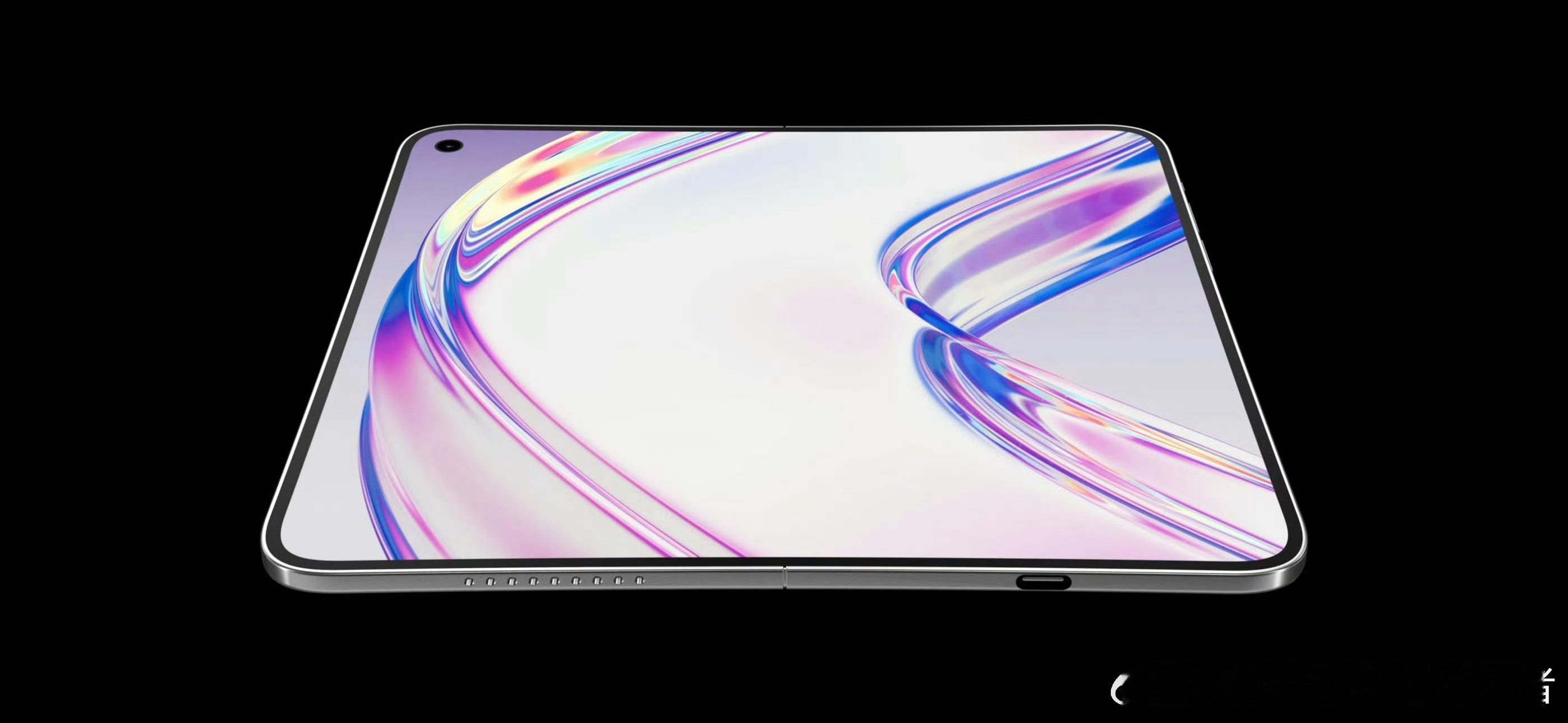 iPhoneFold最新渲染图曝光iPhone Fold折叠屏手机最新渲染图,看来这个设计就这样子了。横向布局Deco,外屏采用居中打孔设计,R角还是看着很舒服。说是要实现无折痕或者视觉无折痕,期待真机。