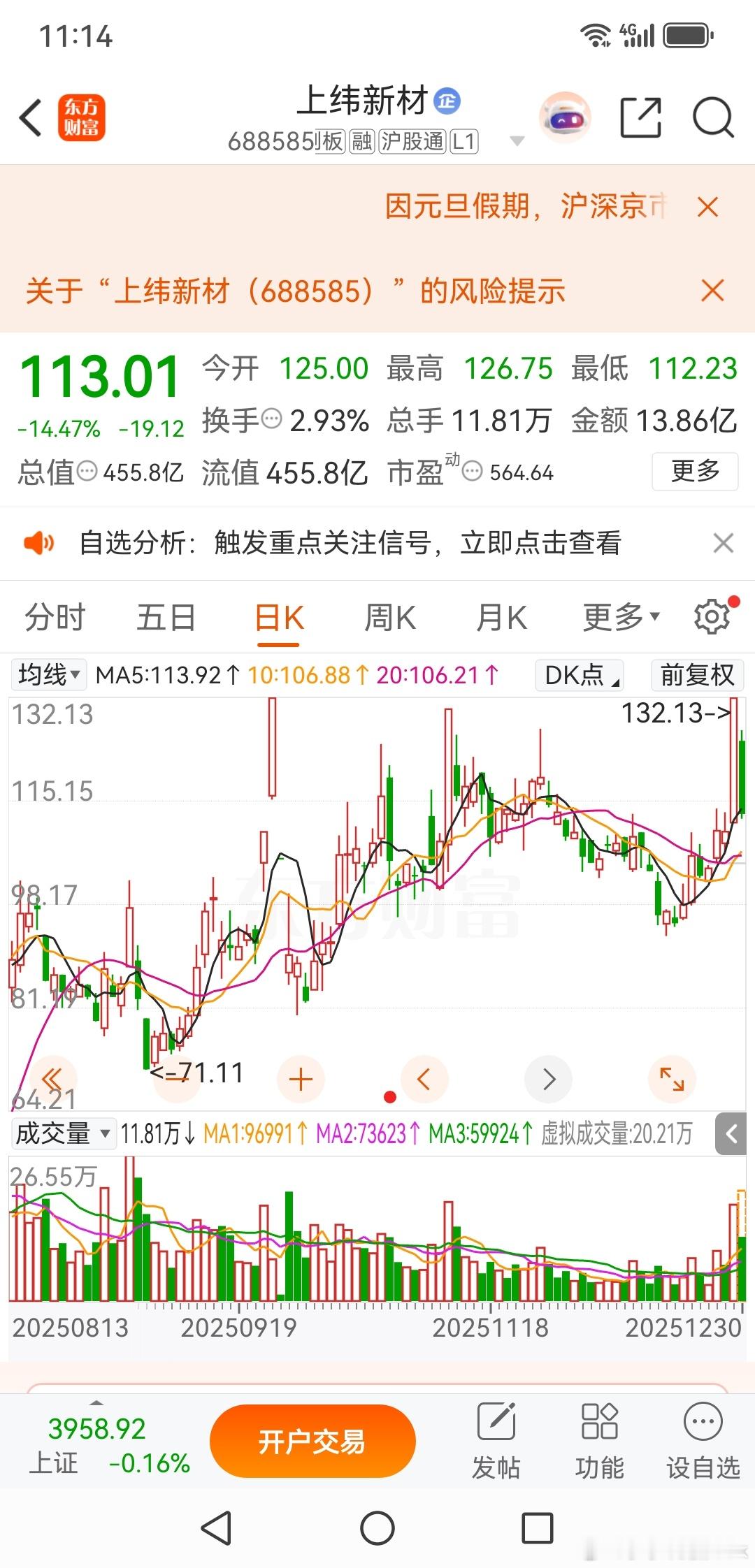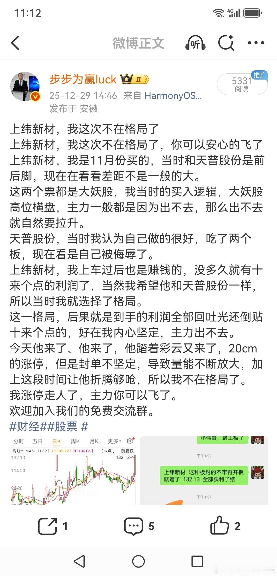 上纬新材,今天的走势比让我吃个涨停还爽。昨天20cm涨停板走了,这是我人品大爆发。欢迎加入我们的免费交流群。财经股票