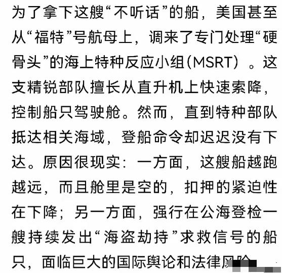 疑似中国的阳谋,继中国在联合国发言把把美国扣押委内瑞拉油轮定性为海盗后,第三艘邮轮贝拉一号不是老老实实接受美国检查了而是逃了,而且发出海盗劫持的求救信号。已经逃了好几天,发了好几天的海盗劫持信号,全世界都知道了委内瑞拉有海盗。哈哈美国现在已经被扣上海盗的大帽子,这下扣得结实。 咱们得讲清楚,从12月10号开始,美国海岸警卫队就在加勒比海域盯着委内瑞拉的油轮下手,先是拦了一艘叫“斯基珀”的船,说是违反了制裁规定,强行登船检查后还把船拖到了指定地点。 这还没完,20日,又在公海控制赴华的巴拿马籍“世纪号”,掠走180万桶原油,特朗普还跟全世界炫耀“油轮我扣了,原油我要了”。 这两次扣押看着是美国在执行所谓的“制裁”,但明眼人都能看出问题所在:美方制裁未获联合国授权,公海截船形同海盗行为。 中国已联合俄伊等国推动联合国安理会召开紧急会议。会上中国常驻代表直接亮明态度,一口气提出了六个“反对”,反对美国的单边霸凌、反对违反联合国宪章、反对侵犯他国主权、反对武力威胁、反对干涉别国内政、反对没有法律依据的长臂管辖,句句都戳在美国的痛处上。 俄罗斯代表也跟着补刀,说美国这是“野蛮执法”,根本不把国际准则放在眼里。委内瑞拉代表更是详细说了美国制裁给本国带来的苦难,医疗物资短缺、民生困顿,全是因为美国断了他们的石油出口这条路。 虽然因为美国有安理会否决权,会议没形成正式决议,但所有国家的表态都被联合国记录在案,中国相当于把美国的行为放在全世界的聚光灯下“公审”了一遍,直接把“海盗行为”的定性摆在了台面上。 就在中国在联合国表态之后,美国盯上的第三艘油轮“贝拉一号”,彻底让美国的处境变得尴尬。 12月22号,美国又拿到了所谓的“扣押令”,等着“贝拉一号”靠近委内瑞拉装油时动手。可这次他们失算了,“贝拉一号”根本不搭理美国的警告,不仅不停车接受检查,反而直接转向加速逃跑,一头冲进了大西洋公海。美国海岸警卫队赶紧派军舰和飞机轮番追踪,可追了好几天都没追上。 “贝拉一号”在逃跑的同时,还持续向周围船只和国际海事频道发送求救信号,内容就四个字:海盗劫持。 别小看这四个字的求救信号,它的杀伤力可比直接指责大多了。要知道,海上求救信号是国际通用的紧急通讯,只要发出去,周围的船只、相关的国际组织都会收到。“贝拉一号”逃了几天,就发了几天求救信号,相当于拿着大喇叭在全世界喊:“美国在公海上当海盗抢船了!” 这一下彻底把美国架在了火上烤。 之前中国在联合国说美国是海盗,还有人觉得是外交辞令,可“贝拉一号”的求救信号一出来,就成了实打实的“证据”——如果美国不是海盗,人家为啥要发海盗劫持的求救信号?为啥要拼了命地逃跑? 美国这时候是真慌了,想解释都没法解释。他们先是说“贝拉一号”有伊朗背景,之前运过伊朗石油,属于制裁名单上的船,可这根本没法反驳“海盗行为”的定性;后来又找补说“贝拉一号”没挂合法国旗,所以他们有管辖权,可这种说法连美国国内都没人信。 有舆论嘲讽美国是“挑软柿子捏”,敢扣跟中国相关的“世纪号”,却拦不住“贝拉一号”,还有人说他们是怕得罪“贝拉一号”背后的土耳其,毕竟土耳其是北约盟友,特朗普可不想多树一个敌人。 而且美国的处境还在持续恶化。国内两党都开始批评特朗普,说他为了点石油把美国的名声全赔进去了,没必要因为这点蝇头小利破坏中美好不容易缓和的关系。 国际上更不用说,越来越多的国家看清了美国的真面目,之前还观望的国家也纷纷表态,反对美国在公海上的肆意妄为。 就连美国自己的盟友都有点坐不住,毕竟如果美国能随便拦委内瑞拉的船,那以后其他国家的船在公海也可能被美国随便拿捏,谁都不想自己的利益受损。 现在再回头看,中国在联合国的表态根本不是一时兴起,而是精准预判了后续的发展。咱们没有直接跟美国硬碰硬,而是通过联合国这个多边平台,把美国的行为定性为“海盗行为”,占据了法理和舆论的制高点。 之后“贝拉一号”的逃跑和求救,更像是把中国的定性给坐实了,让全世界都看到了美国的霸道本质。这就是所谓的“阳谋”,一切都摆在明面上,美国明知道是坑,却因为自己的贪婪和霸道不得不跳进去。 说到底,美国之所以会陷入这种困境,核心还是因为他们把自己的单边意志当成了国际规则。他们忘了,现在的世界早就不是美国一家独大的时代了,随便在公海上拦船抢货,这种海盗式的行为必然会遭到全世界的反对。 而中国这步棋的高明之处,就在于用国际法和国际舆论当武器,既维护了自己的合法权益,也帮委内瑞拉出了头,更让全世界看清了美国的真实面目。 现在特朗普已经被迫改口,宣布暂缓两个月对委内瑞拉动武,把“封锁”改成了“隔离”,显然是想给自己找个台阶下,但这顶“海盗帽子”,恐怕是摘不掉了。
