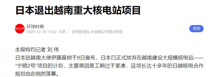 [太阳]越南这次真是把“反复无常”演绎到了极致!日本驻越大使直接摊牌,百亿美元的宁顺2号核电站项目,日本不陪着玩了。这事儿真不怪日本不讲义气,纯属越南自己作死。 2009年那会儿,越南一心想发展制造业,吸引了不少外资工厂入驻,工业规模慢慢扩大,可电力供应跟不上节奏,缺电成了常态,不少工厂因为断电没法正常生产。 为了解决这个问题,越南把目光投向了核电,琢磨着靠这种稳定的能源保障工业发展,还想出了让俄罗斯和日本分别负责宁顺1号、2号核电站的办法,想着两边借力筑牢能源基础。 当时宁顺2号项目规划得挺具体,装机容量计划在2到3.2吉瓦之间,建成后年发电量能达到220亿千瓦时,差不多能满足越南南部四分之一的工业用电需求,原计划2035年投入商业运营,这个规划还写进了越南的国家电力发展战略里。 双方很快签了合作协议,越南这边也动了起来,做了土地勘测、初步设计这些前期工作,甚至选了450名技术人员送到日本培训,看着是要好好推进这个项目。 变故出在2011年日本福岛核泄漏事故之后,这个事故让全球都对核电安全多了份警惕,越南民众的担忧也一下子爆发出来,街头陆续出现抗议活动。 这些反对声让越南国会不得不重新评估核电项目的风险,再加上项目预算一路上涨,从最初的80亿美元涨到了160亿美元,对于财政不算宽裕的越南来说,这个压力实在不小。 到了2016年,越南国会干脆以经济可行性不足、安全风险可控性低为由,叫停了包括宁顺2号在内的所有核电项目,这一停就将近十年。 暂停项目并没有解决电力短缺的根本问题,这些年外资工厂还在不断涌入越南,电力缺口越来越大,2023年越南北部地区出现了大面积断电,不少外资企业被迫停工,损失不小。 电力紧张的压力让越南在2024年又重新启动了核电计划,转头就去催促日本继续推进宁顺2号项目,这次重启,越南变得特别急切,不仅给项目定了很苛刻的时间表,还想把这个项目当成政治献礼,要求必须在2035年前投产。 可此时的日本已经不是当年的状态了,福岛核泄漏事故后,日本国内的核电产业受到很大冲击,相关人员都在忙着本土核电设施的重建和整改,根本没多余的精力承接大规模的海外核电项目。 日本之后提高了核电安全标准,之前为宁顺2号项目设计的反应堆模型已经不符合新的标准,重新研发设计需要大量时间。 有日本官员早在2025年2月就明确告诉越南,目前没有符合要求的反应堆模型,项目最快要到2036年才能启动,实际投产时间可能要推迟到2040年。 这样的时间差让双方的矛盾彻底摆到了台面上,越南催进度,日本却受限于安全标准和技术条件没法妥协。 雪上加霜的是,越南之前的一些政策也影响了两国的合作氛围,越南河内市中心出台了禁止燃油动力摩托车上路的规定,要知道越南是日本本田公司的重要市场,本田在当地摩托车市场的份额占到了80%左右,这个规定直接冲击了本田的核心利益。 日本大使馆专门就这事向越南方面发函交涉,可始终没收到越南的正式回复,这让双方的合作氛围变得更加微妙。 所有矛盾最终在2025年12月8日彻底爆发,日本驻越大使伊藤直树在河内正式宣布,日方决定终止宁顺2号核电站项目的合作,理由就是工期太紧凑,没办法保障项目的安全。 日本的退出让越南陷入了尴尬境地,十多年来在这个项目上的前期投入全打了水漂,已经完成的可行性研究、选址勘探这些工作都成了无用功,部分已经动工的基础设施也沦为烂尾工程。 之前送去日本培训的450名技术人员,现在也没了对应的项目可以对接,处境尴尬,更麻烦的是,越南的电力困局一点没缓解。 原本指望宁顺2号核电站投产后能兜底工业用电,现在这个计划泡汤了,外资企业对越南的供电可靠性越来越担忧,不少企业都开始犹豫要不要在越南扩大产能。 而俄罗斯负责的宁顺1号项目,到现在也没有明确的推进时间表,等于越南寄予厚望的两个核电项目都成了烂摊子。 值得注意的是,在整个过程中,越南始终没有考虑技术成熟、性价比也高的中国核电方案,事实上,中越早就有跨境电力合作,2023年中越跨境电力线路已经成功输送了400亿千瓦时的电力,这也证明了两国的电网是完全兼容的。 中国的核电技术已经在多个国家落地应用,项目推进顺利,还能提供低利率的贷款支持,融资成本比日本、欧洲的相关方案更有优势。 但越南出于地缘层面的考量,一直刻意排斥中国核电,宁愿承受电力短缺的压力,也不愿开展务实的合作,如今被日本干脆利落地终止合作,落得这样的下场,说到底还是自己的选择造成的。 能源规划关乎国家经济发展的基础,需要长期稳定的布局和务实的合作态度,越南在宁顺2号项目上的反复操作,不仅浪费了大量的时间和资金,还影响了外资对当地的投资信心,原本想靠核电破解电力瓶颈、推进工业发展的目标也落了空。