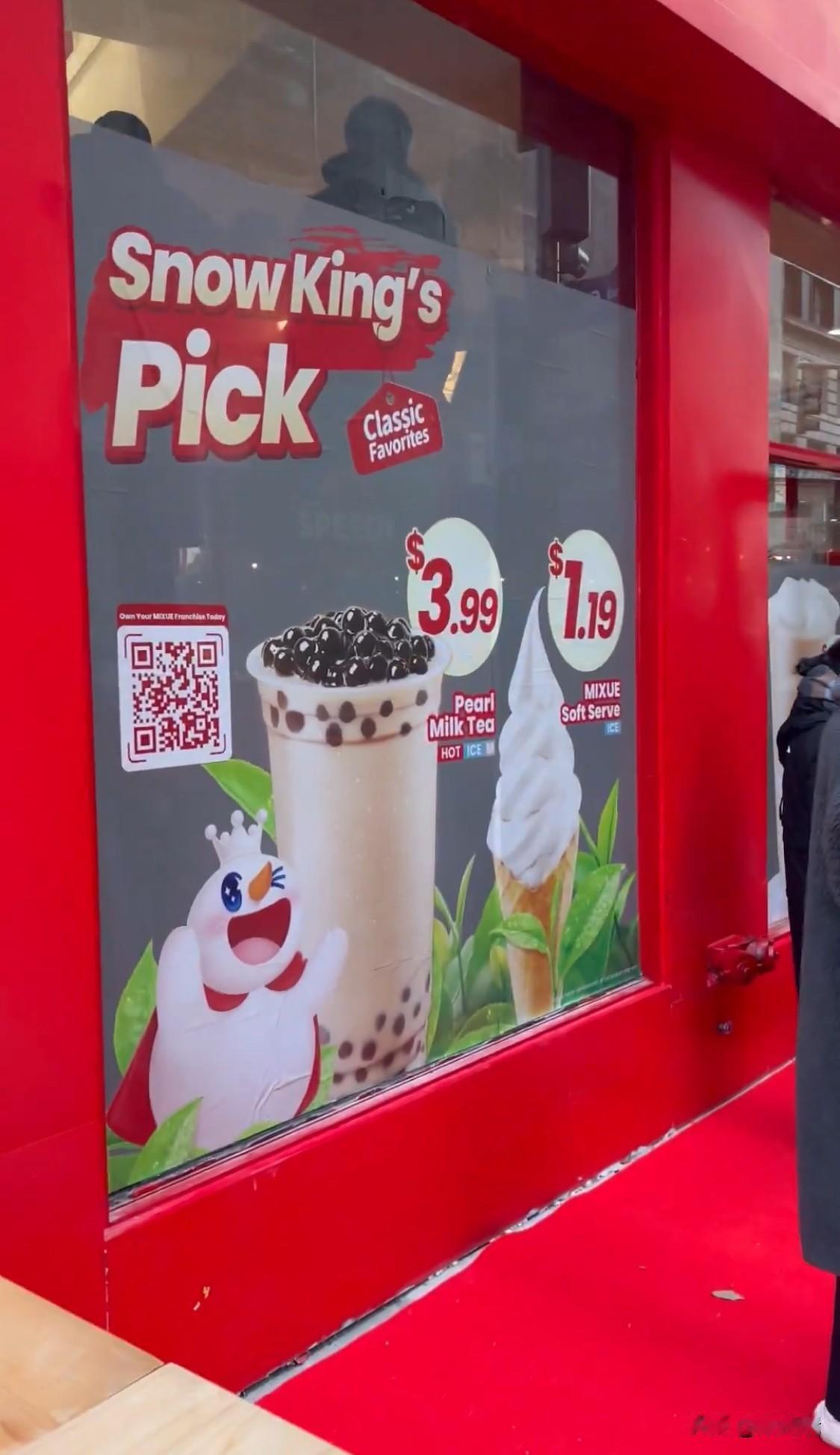 蜜雪冰城在纽约市的第二家分店正式开业,现场排起了长队。 位于韩国城第32街的这家蜜雪冰城是纽约市的第二家分店。 蜜雪冰城是一家中国冰淇淋和茶饮连锁店 ,最近已成为全球门店数量最多的餐饮连锁店,超过了麦当劳和星巴克等巨头。 人们越来越注重价格实惠! 蜜雪冰城的核心理念是价格实惠! 虽然其他奶茶品牌一杯饮料可能要价 5.00 美元至 7.00 美元,但蜜雪冰城专注于物超所值的模式: 冰淇淋🍦 1.19美元 珍珠奶茶🧋 3.99美元 鲜榨柠檬水🍋 2.00美元 怎么会这么便宜?! ✅垂直整合: 内部生产:与许多从第三方购买原料的特许经营店不同,蜜雪冰城拥有自己的工厂、仓库和物流网络。 蜜雪冰城的主要收入来源是向其 50,000 多名加盟商出售原材料(糖浆、粉末、包装,甚至吸管),而不是仅仅从销售额中抽取分成。 这些价格亲民的中国品牌将在纽约、洛杉矶、芝加哥等大城市大获成功。 你认为蜜雪冰城会给美国品牌带来强劲的竞争压力吗?