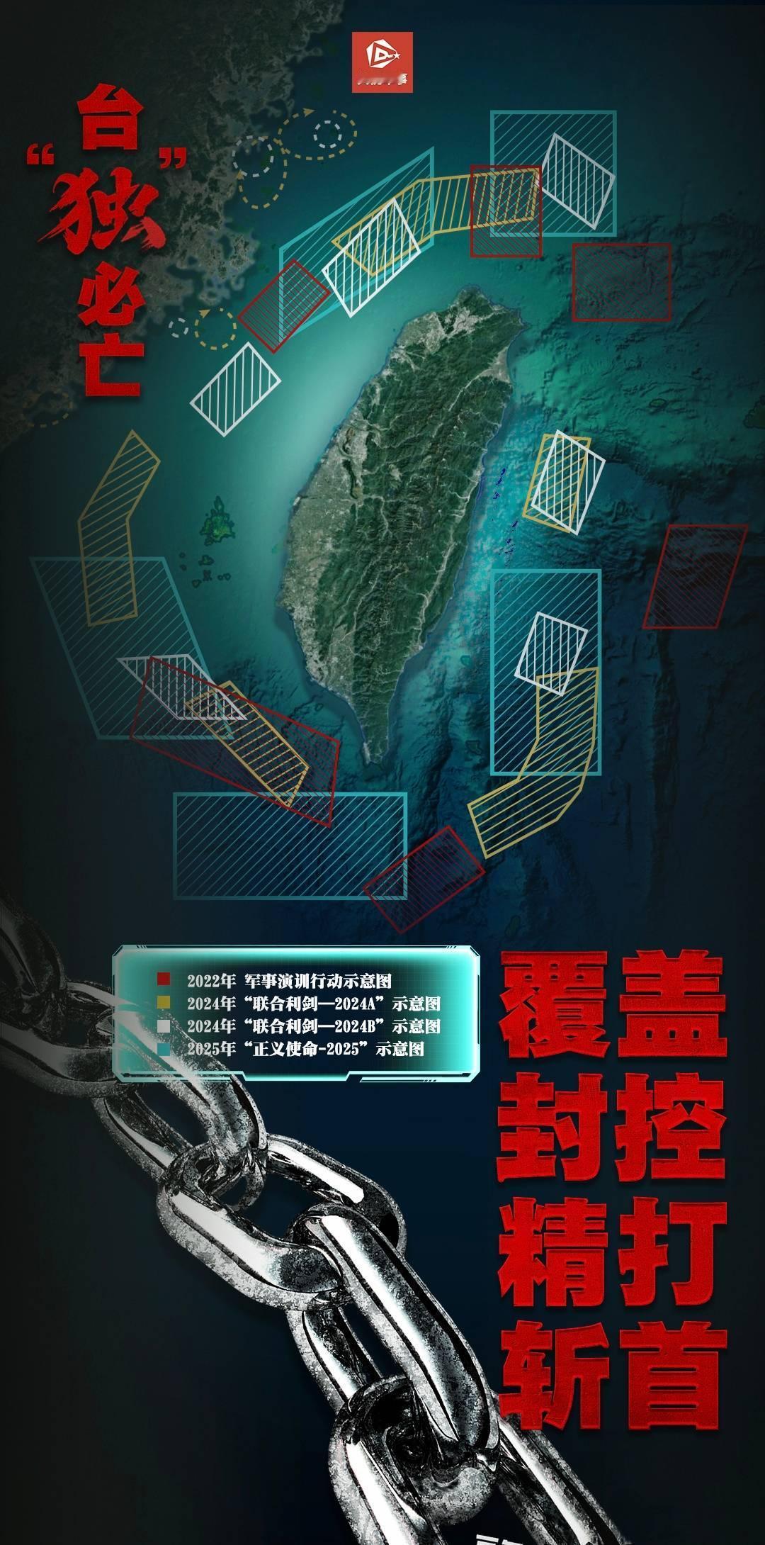 围岛军演首日:解放军无人机远眺台北,两栖攻击舰加入演习,导弹已经竖起,央视首提“斩首”   12月29日,解放军东部战区“正义使命-2025”演习拉开帷幕,首日就有几个让人印象深刻的画面和消息,看完之后心里还挺有感触的。   最先引发大家讨论的,是一段解放军无人机拍摄的视频。画面里能清楚看到台北的101大厦,漆黑的夜空下,大楼的轮廓很清晰,甚至能让人隐约感受到城市的气息,还有一架民航客机从大厦附近飞过。   这段视频看着平静,却藏着不少关键信息——视频左下角有作战计时码,这说明不是普通的拍摄,而是带有作战瞄准的意味。   后来有专业人士比对图像,结合淡水河谷和周边桥梁的位置,判断这架TB-001“双尾蝎”无人机大概在淡水河口外12公里的地方。   懂点地理的都知道,这已经突破了所谓的“12海里线”,相当于直接到了台北的防空关键区域。   有意思的是,台军之后发布的通报里,提了不少侦获军机军舰的数字,却压根没提这架近在咫尺的无人机,是没发现还是不敢说,想想都能明白。   之前台军还放了一张F-16V战机拍摄解放军歼-16的照片,想证明自己的实力,结果很快被拆穿,那是F-16V被歼-16咬住尾巴,没办法才用外挂吊舱拍的“逃跑视角”。   对比解放军拍的台北夜景视频,这种包装出来的“底气”显得特别苍白。   除了空中的动作,海上的部署也很受关注。解放军首艘两栖攻击舰“海南舰”,在055型万吨大驱延安舰的护航下,长途奔袭超过10000海里赶到演习区域。   两栖攻击舰的加入,可不是普通巡逻那么简单,这意味着演习不只是演练封锁或火力打击,连登陆作战相关的准备都已经到位了。   这种南北夹击、全面围困的态势,很明显是在告诉岛内分裂势力,他们的活动空间已经越来越小了。   更值得注意的是,这次演习的措辞还有了新变化。央视在报道演习海报时,第一次明确用了“斩首”这个词。   这两个字分量可不轻,不是随便喊的口号,而是战术目标的转变——以前谈威慑,现在直接指向了定点清除。   国防大学的专家解读说,这次演习还模拟截获了“海马斯”的信号,导弹部队也已经竖起了发射架,这些都是针对“台独”首恶分子的重要目标进行的精准模拟打击。   也就是说,像赖清德之流,不管躲在“总统府”还是地下指挥所,都躲不过去,头顶的利剑随时可能落下。   现在能明显感觉到,演习和实战的界限越来越模糊了。以前总听人说“决战境外”,可当对方的无人机能在夜色里悄无声息飞到核心城市上空,再加上随时待命的弹道导弹和远箱火部队,那些空话瞬间就没了说服力。   对于那些把“台独”当筹码的政客来说,恐怕往后很难睡安稳了,谁也不知道下一次无人机出现,带来的是照片还是无法挽回的结局。
