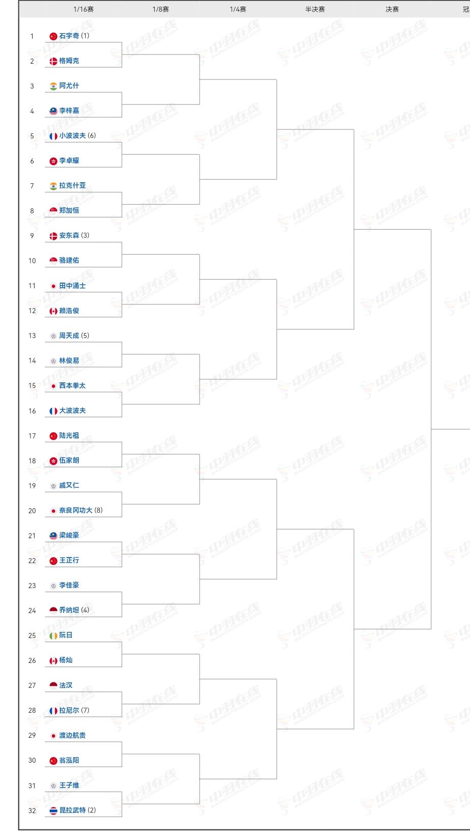 羽毛球大马公开赛签表出来了。 男单石宇奇独守上半区,王正行、翁泓阳、陆光祖都在下
