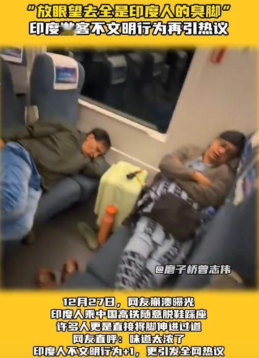 “滚回自己的国家!”四川一男子坐高铁时,忽然闻到一股脚臭味,离近看到一群外国人脱了鞋直接踩在座位上,有几个人甚至躺着把脚伸到了过道里!随着人越来越多,车厢里的味道也越来越浓,周围乘客更是都纷纷捂起了鼻子。 “这味儿也太冲了!”曾明刚把自己和沉重的行李箱塞进高铁座位,一股浓烈的酸腐气味就蛮横地钻进了鼻腔。 只见他皱紧眉头,并下意识地瞥了眼自己脚边,发现鞋子都穿得好好的,但想到最近刷到各种高铁不文明新闻,心里一阵烦躁。犹豫了几秒,他深吸一口气,撑着扶手站了起来,就准备去说道说道。 事情的转变,从他顺着气味走到车厢连接处就开始了。预期的“个别人”变成了一群人,就看到几个深色皮肤的外国人,或坐或躺地,占据了那片空间。有的脱了鞋,大大咧咧地把脚搁在对面的座椅上;有的直接坐在车厢地板上,光脚伸在过道酣然而眠。 而那股浓烈的体味与皮革、灰尘味混合发酵的扑面痛击,让原本曾明准备好的话,卡在了喉咙里。面对一个人,他或许还能鼓起勇气开口;但面对这一群显然来自不同文化习惯的外国人,他瞬间感到一种语言和力量上的双重无力。 因此他沉默地退了几步,但没坐下,反而是举起手机,用摄像头无声地记录下,那片混乱的场景:那些踩在座位上的脚、伸在过道里的腿、周围乘客捂鼻侧身的表情。他的动作小心而迅速,心跳有点快,像在做一件隐秘的事。 回到座位后,他立刻开始编辑视频并发布,而视频很快激起了水花。评论区里,大部分声音是支持与共鸣:“素质呢?”“看得我拳头硬了!”“建议铁路部门拉黑。”这些声音让曾明获得了一种迟到的、虚拟的“正义感”。 事实上,面对类似的高铁不文明行为,有远比私下愤怒或网络曝光更有效、更负责任的做法。最直接的方式是寻求工作人员的帮助。高铁乘务员和乘警受过专业训练,能够以公正的第三方身份进行劝阻和调解。 其次,可以使用官方渠道,如通过座位扶手上的“铁路畅行码”或12306 APP、小程序在线提交问题,列车工作人员会实时接收并处理。这些方法避免了旅客间的直接对立,将问题纳入了规则管理的轨道。 只能说,这节弥漫异味的高铁车厢,成了一面棱镜。它折射出的,不止是几个人的不雅行为,更是全球化时代下,陌生人如何在紧密的公共空间里共处的永恒难题。 我们愤怒于个人舒适对公共环境的侵占,困惑于不同生活背景带来的理解鸿沟,最终却往往只能依赖脆弱的规则和各自的自觉。曾明的手机镜头,没能驱散那股气味,却拍下了一道比车厢更长、更复杂的现代生活的缝隙。 对此您怎么看?欢迎大家到下方评论区留言共同讨论。 印度高铁请问怎么把要去拉屎说的文明一点呢 信息来源: 搜狐新闻客户端|《“放眼望去全是印度人的臭脚”,印度游客不文明行为再引热议。你遇到会怎么办?》 文|沐琨 编辑|南风意史
