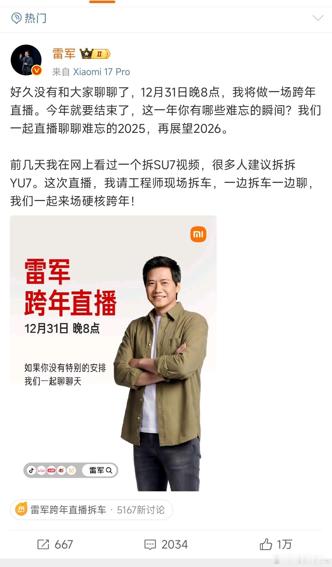 雷军跨年直播拆车请工程师现场拆YU7可以严谨一点,建议小米可以在现场配置一台测试拉伸和屈服强度的材料试验机!到时候后可以看看小米宣传的那些是否属实,比如2200Mpa就相当于每平方厘米22吨!你们既然要测就给大家测明白了,因为这种的一般人也没法测,需要有机器,像74.4%的前防撞梁覆盖面积这种大家都能测的项目属实意义就没那么大了,对吧?只是,这次可别像前两天一样给评论区禁言了