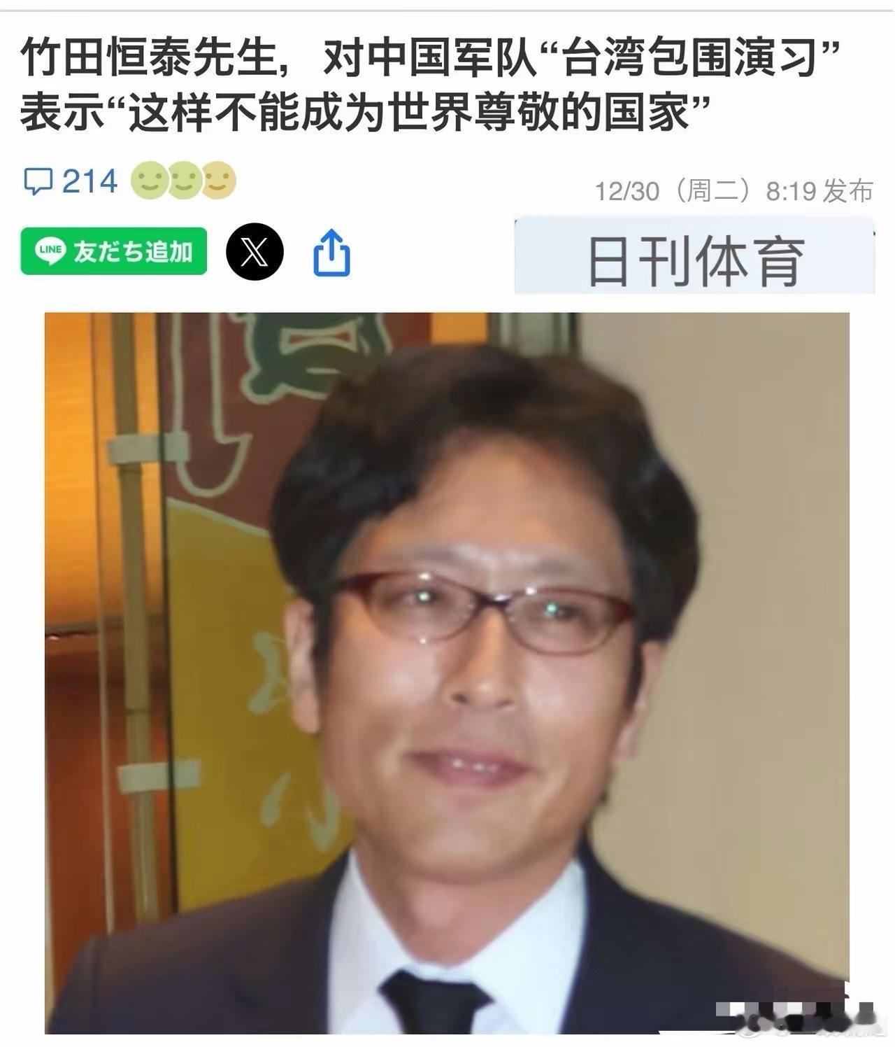 针对中方军演!日本人表态!自称是日本天皇后裔的竹田恒泰29日在社交媒体上妄言称,“中国就是这样野蛮的地方。区分使用糖果和鞭子,控制周边各国,从几千年前就没有改变。这样的话,就不能成为世界尊敬的国家。”值得一提的是,这位自称皇族后裔的竹田恒泰祖父是恶名昭著的731部队参谋竹田恒德。评一句,我们老话说得好,龙生龙,凤生凤,老鼠生的孩子会打洞。但凡有点正确历史知识,也不会喷出这样的话,都会晓得谁是龙凤,谁是老鼠。