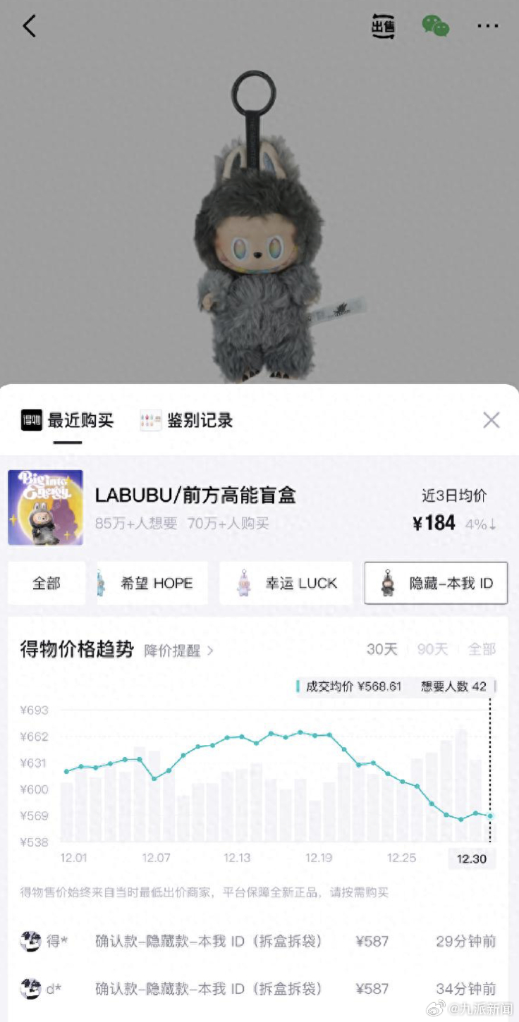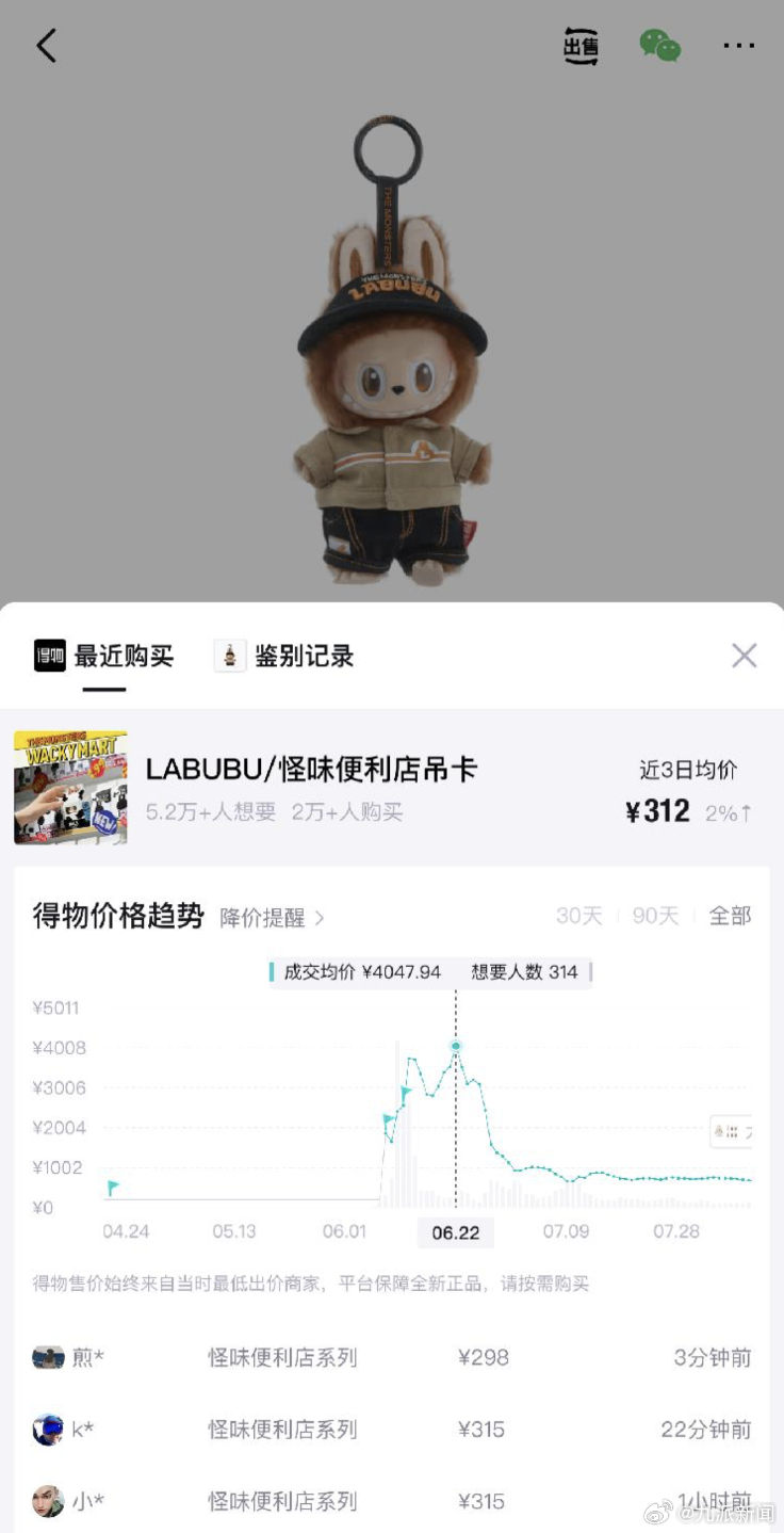 #黄牛称LABUBU已无操作价值#【#泡泡玛特有产品较峰值跌幅92%#:从4048元的峰值跌至308元】2025年潮玩圈顶流LABUBU系列在二手市场上演了一场戏剧性的价格反转。曾被玩家疯抢、黄牛爆炒的热门款式,如今遭遇“腰斩式”下跌,隐藏款价格较峰值跌幅超八成,部分常规款甚至跌破发行价,似乎宣告着本年度潮玩“理财神话”的终结。今年4月,LABUBU3.0“前方高能系列”正式发售,凭借超高人气引发市场狂热。App数据显示,该隐藏款发售后价格持续飙升,6月14日达到4522元的峰值,较99元原价溢价近44.7倍。同期推出的怪味便利店系列搪胶毛绒同样火爆,6月13日发售后仅9天,成交价就从199元暴涨至4048元,溢价达19倍。这场价格狂欢在“6·18”期间戛然而止。泡泡玛特启动全渠道大规模补货,持续的产能扩充成为价格降温的“关键推手”。截至12月30日,LABUBU3.0隐藏款“本我”最低成交价仅540元,较峰值暴跌88%;6个常规款中,“平静”等款式商家出价已跌至96元,低于99元的原价,正式开启“破发”模式。怪味便利店系列搪胶毛绒价格跌幅更为惊人,到7月1日,价格已回落至1120元,较峰值跌幅72%。截至12月30日,从4048元的峰值跌至308元,较峰值跌幅92%。二手平台上,LABUBU4.0的市场价格更是随着多次补货不断下降,已有多个常规款跌破79元发售价。在黄牛群中,不少人低价甩卖该系列盲盒,“59元收”“70元转增盒机未拆封款U”,有黄牛表示,现在LABUBU3.0前方高能系列已无操作价值,“门店现货摆了一堆无人要了,没有利润的款。”而不少黄牛表示,LABUBU4.0系列部分款还有微薄利润,“还能赚10元、20元,马上也变‘倒闭款’。”行业专家分析指出,LABUBU价格暴跌的核心原因是供给量激增与“去黄牛化”举措的双重作用。泡泡玛特通过大幅扩产、全渠道放货和限购规则,打破了黄牛赖以生存的“稀缺性”逻辑,成功夺回产品定价权。事实上,这场价格调整本质上是潮玩市场从金融化炒作向消费品本质的回归。(海报新闻)