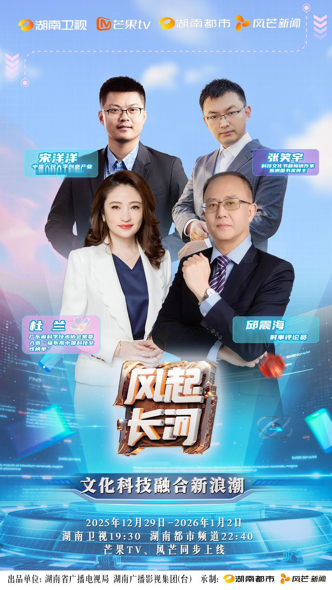 全球科技革命正在深刻改变世界。AI创作、智能穿戴、具身智能、太空旅行……这是新科技的破晓,也是文明更新的序章。文化和科技究竟是什么关系?我们为什么要推进文化和科技融合? 12月29日至1月2日晚7:30,邱震海博士将在芒果理论大片《风起长河:文化科技融合新浪潮》,深度探讨文化和科技融合的底层逻辑,一起感受时代变革下的浪潮奔涌。 12月31日晚8:00,独树一帜的“震海会跨年思想演讲”将第六度震撼开启。届时,著名学者邱震海博士将与科技专家肖然、商业领袖杜宇及多位兼具国际视野的中外嘉宾一道,在变革的关键节点带领全球观众透过复杂表象,看清世界的真实逻辑。