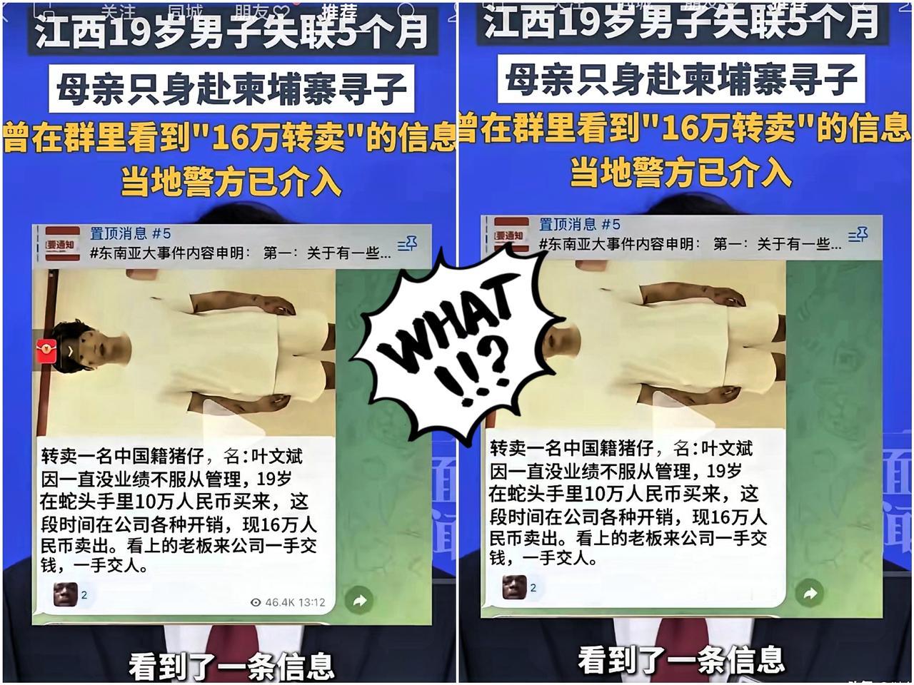 又是柬埔寨! 江西19岁小伙失联五月,母亲闯柬埔寨寻子!让人脊背发凉在群里看到儿子被标16万转卖的信息。 一个普通母亲,在异国他乡,语言不通,环境陌生,却毅然决然踏上寻子路,这份勇气,让人动容又心疼。 跨境人口贩卖,这颗毒瘤,何时能除?它不仅吞噬着无数家庭的幸福,更挑战着人类的道德底线。我们不禁要问,为何此类事件屡禁不止?是监管的漏洞,还是利益的驱使? 真心希望,相关部门能加大打击力度,让这些不法分子无处遁形。同时,也呼吁大家,提高警惕,保护好自己和身边的人。你觉得,我们还能做些什么来阻止这类悲剧的发生呢?一起探讨,让爱与正义,照亮每一个黑暗的角落!