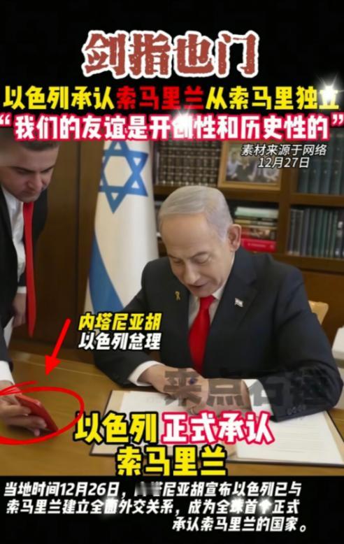 以色列在取得中东大势全赢局,并且完全控制局面之后,不沉寂于现状,将继续扩展优势 这回,以色列是真不打算再低调了,刚打完一场不算小的仗,还没从红海那头的火药味里走远,它就又在非洲角落推了新一张牌:承认索马里兰是个国家。 这事儿一抛出来,整个中东和非洲都炸了锅,不是因为它有多轰动,而是这一步太明显——这不是普通的外交动作,这是赤裸裸地插手别人家门口的事。 换句话说,以色列这次不是“防守反击”,而是“主动出击”,而且出手的位置选得相当刁钻。 先说清楚,索马里兰不是新冒出来的,它早在上世纪九十年代就自称“独立”,但世界上几乎没有一个国家真正承认它。 为什么?因为在国际法上,它还是属于索马里国家的一部分,这种事情就像家庭内部争产,外人一般不插手。但现在,以色列直接跳出来,说“我承认你”,这不是挑事儿是什么? 以色列为啥要干这事?它到底图什么?这事得回头看它最近这几年干的那些事,从2020年开始,以色列和一堆阿拉伯国家“破冰”,关系慢慢地不再那么敌对,甚至有些国家开始跟它正常交往。 这对以色列来说,是个大转折,以前周围一圈国家都瞪着它,现在好歹有点外交空间,再加上美国一直在背后使劲,给以色列撑腰,它底气自然也就越来越足。 但话说回来,中东这一摊子事,不可能靠几份协议就彻底搞定,巴勒斯坦问题一直没解决,胡塞武装那边又闹得不消停,红海航道频频出事,以色列不可能坐着等别人来找麻烦,它得主动把手伸得更远一点,把人家的后门也看住。 这时候,索马里兰就成了一个理想的落脚点,这个地方虽然不大,但位置关键。它正对着红海航道,隔着海就是也门,要知道,胡塞武装就是从也门那边搅局的,动不动就袭击船只。 而以色列要反击这些人,以前得从本土起飞,绕一大圈,费时间又费油,现在好了,如果能在索马里兰扎下根,距离近了,效率高了,成本也低了。 所以这事看着像是“承认一个国家”,其实核心还是为了军事布阵,为了打击那些在红海搅局的势力。 而且,还有一个更重要的意思:以色列不想再只守着家门口,它要把触角伸出去,要在非洲这一侧建立起自己的影响圈,以前它被阿拉伯国家围着,现在它想反过来,从非洲那头包抄回来,这不是小算盘,这是大布局。 当然,周围国家不可能看着它这么干而不吭声,索马里第一时间跳出来抗议,非洲联盟和阿拉伯国家也纷纷指责。 大家的意思很明确:你以色列这是越界了,这是在挑动分裂,是在破坏区域稳定,中国也明确表态,支持索马里的主权完整,反对任何形式的分裂行径。 这立场不难理解,因为这事要是开了头,很多地方都可能效仿,到时候全球范围内的主权问题都会变得更复杂。 可以色列也不是傻子,它知道这事不合法,也知道会被骂,但它压根不在乎这个名义上的问题,它要的是实实在在的利益,只要能在索马里兰站住脚,能把那片海域的主动权握在手里,其他的骂声它根本不怕。 而且它还清楚一个现实:现在的国际秩序早就不讲什么“普遍共识”了,谁拳头硬,谁就能说话,它敢这么玩,是因为它知道美国不会真反对,欧洲也不敢硬顶。 只要没有大国出面干预,小国的抗议也就只是抗议,起不到实质作用,更有意思的是,这事还隐约带点“以其人之道还治其人之身”的意思。 国际社会一直力挺巴勒斯坦建国,以色列心里自然不爽,现在它反过来搞个“承认索马里兰”的动作,有点像是在说:你们承认我不喜欢的国家,我也可以承认你们不喜欢的政权,谁怕谁啊? 这种对着干的方式,虽然不光彩,但确实有效,而索马里兰也乐见其成。它这么多年一直想获得国际承认,但苦于没人搭理,现在有个国家伸手,它自然紧紧抓住。 哪怕只是象征性的承认,对它来说也是个突破,能借这个机会向其他国家喊话,争取更多支持。 不过,这种短期的“得利”,未必是长远的好事,一旦这块区域的平衡被打破,周边国家可能也要跟着调整姿态,那些本来没啥存在感的武装组织,会不会借机扩大活动范围?整个东非会不会因此陷入新一轮的混乱?这些问题现在都没有答案。 同时,以色列这次的动作,也让人看清了一个趋势:它已经不满足于当一个“中东小霸王”,它要成为一个有远程影响力的区域强国,过去它的战略是“保家”,现在它的目标是“扩圈”,要在更多地方留下自己的印记。 而这种扩展不是靠谈判,而是靠行动。它不再等国际社会认可,而是自己动手去塑造局势,这种做法激进、冒险、甚至有些不计后果,但在当下这个越来越弱肉强食的国际环境里,反而显得顺理成章。 对比来看,美国在整个事件中保持了微妙的“沉默”,不支持,但也不反对,这种态度其实已经是默认,毕竟,美国自己也在非洲之角有军事兴趣,以色列的动作某种程度上是帮它“打前站”。 如果未来美国也顺势在这片区域增加投入,那以色列这步棋就彻底变成了“先手”,它不仅抢占了位置,还掌握了话语权。