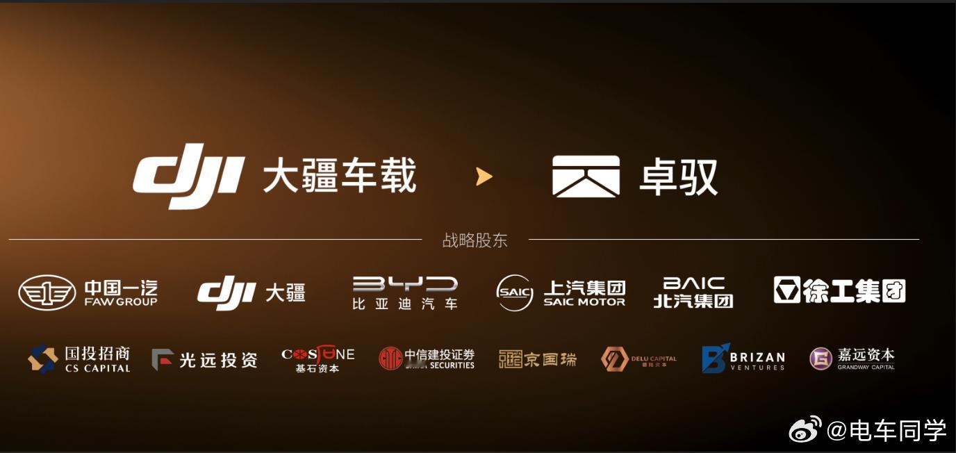 去年9月卓驭正式从大疆体系内独立。也确实不容易,从被庇护的研发部门,成为自负盈亏的市场主体。目前上汽、比亚迪、大疆、北汽都是目前卓驭的战略股东...尤其是今年一汽投资了36亿,几乎可以说让卓驭成了完全体电车同学随便聊