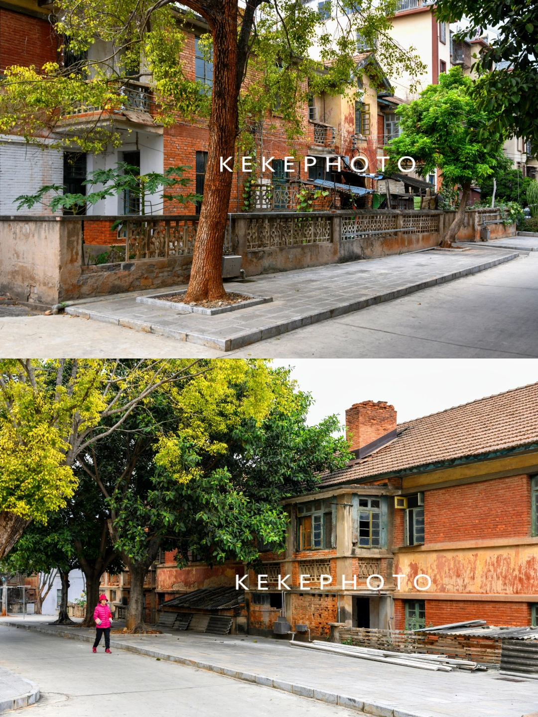 这些一排排低矮的两层红色砖木房,满满的苏式风情建筑风格,走进这片宿舍区,仿佛一瞬间猝不及防地穿越到上世纪七八十年代!