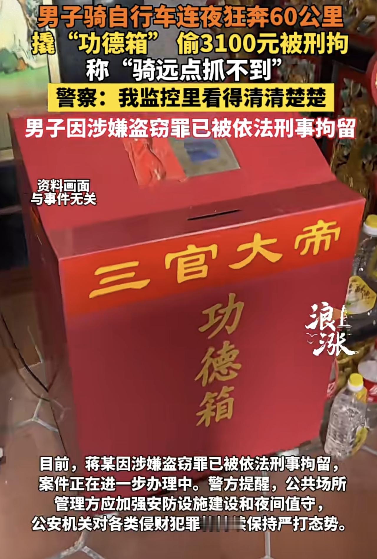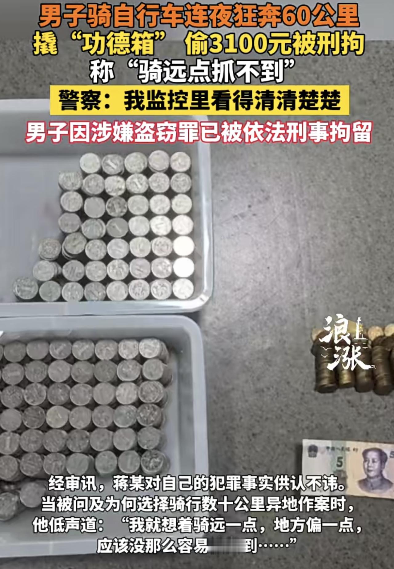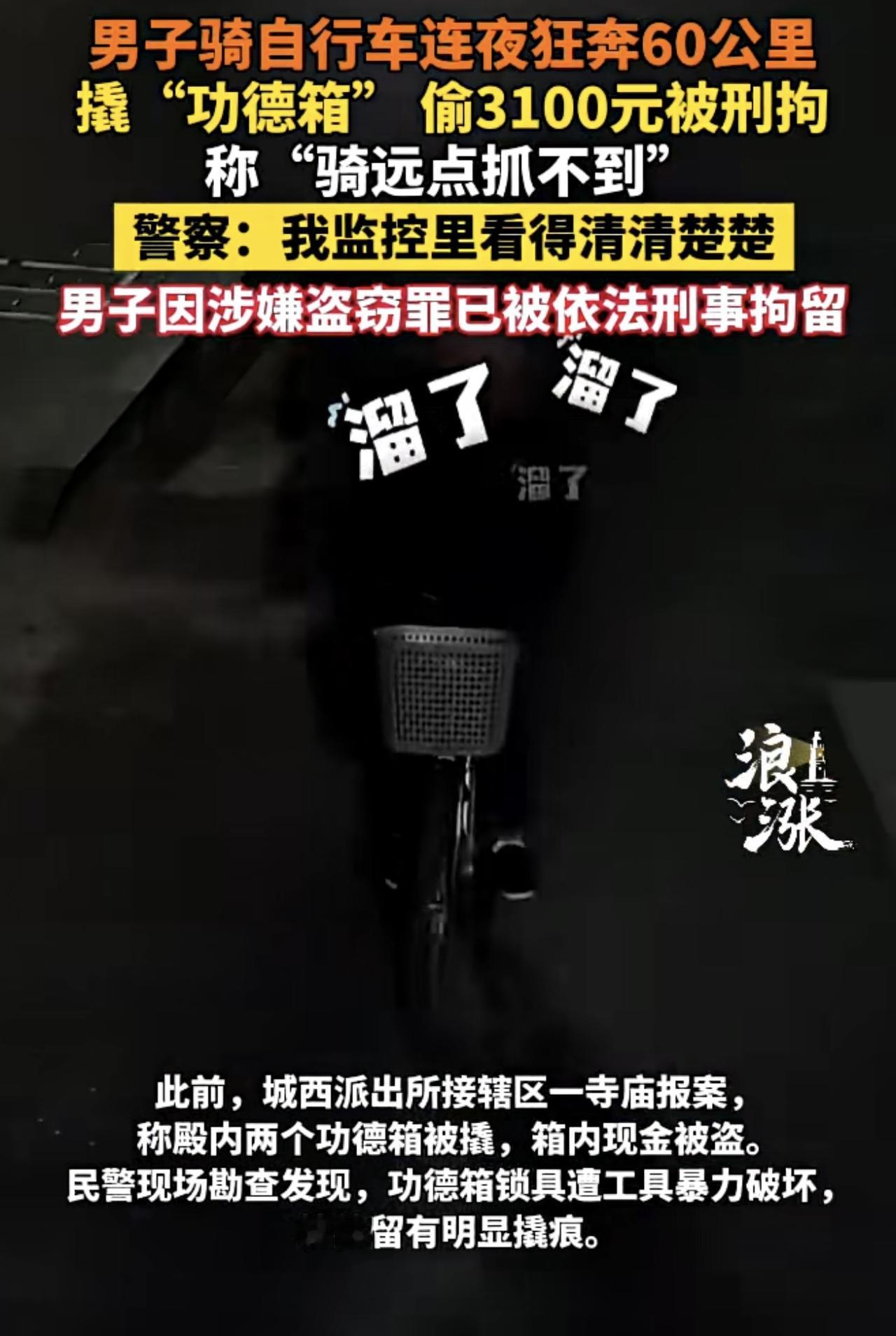 男子凌晨骑60公里撬功德箱,称“骑远点不易被抓”,真相让人震惊! 12月中旬,浙江台州一男子凌晨骑老式自行车往返60公里,撬开两只寺庙功德箱,盗走3100余元,其中绝大部分为一元硬币。作案后,他信心满满地说,“骑远点,警察不容易抓到我”。12月17日,警方锁定其温岭出租屋,将其抓获,现场缴获作案衣物和工具,并追回2800余元赃款。 这起案件表面看似“低智”,但背后的细节耐人寻味。功德箱钱财属于寺庙财物,盗窃将面临刑事拘留和法律制裁。现有案例显示,盗窃数千元并多次作案,判刑可达数月乃至多年不等。 “气死了,就凭这点钱还敢大摇大摆?”有人愤怒,质疑社会治安;有人叹息,思考背后贫穷与价值观扭曲的现实。此案提醒所有寺庙和公共场所:防盗不是摆设,安全意识和技术硬件缺一不可。 你怎么看?“骑远点不易被抓”是无知,还是某种错位的勇气?评论区见!