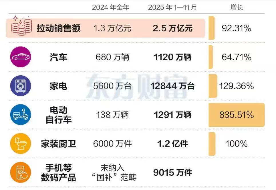 2025最后几天,新的消费风向标已经很明显了。 最近,有网友曝出,在某品会买羽绒服竟然有西安的补贴,而且全国可用,不限地域,也没有门槛。这太神奇了,要知道以前这种操作是家电数码国补,没想到衣服也开始了? 其实也并不奇怪,主要国补拉动消费的效果太明显了。今年1到11月,国补带动相关商品销售额超2.5万亿,覆盖超3.6亿人次。这接近了2024年的两倍。 而近期刚开完大会,定了明年的消费基调,一个很重要的信号就是,2026会继续推动国补,新的资金已经确定,可能会覆盖更广泛的领域。 因为家电国补本质上是相对“恒久”的消费,比如今年以旧换新了的电视,明年补贴再多可能都不会再换,起码也要两三年才会考虑。这就意味着,国补范围必须放大,覆盖到大家的衣食住行,消费拉动的效果才更为明显。 这说明国补不是“乱撒钱”,而是在重塑价格结构。它不是让商品“便宜到离谱”,而是让原本卡在“犹豫区间”的消费,变得顺理成章。而现在,这套逻辑,开始从“大物件”,慢慢延伸到衣食住行的日常层面。 2026的消费,我们拭目以待!