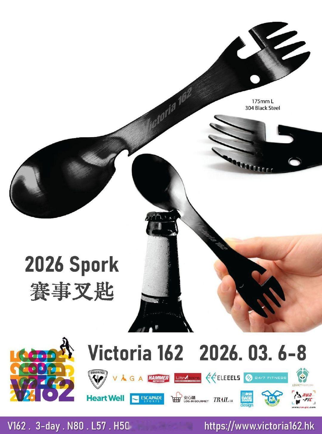 香港 Victoria 162 越野跑赛事参赛包里会发一个不锈钢多功能叉勺。这个好,选手自带餐具,发个可以长期利用的减少赛道垃圾叉勺。越野跑 环保 赛事组织