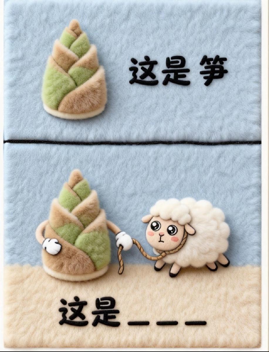 绝了!羊毛毡笋和羊藏谐音梗,评论区说说你想到的答案