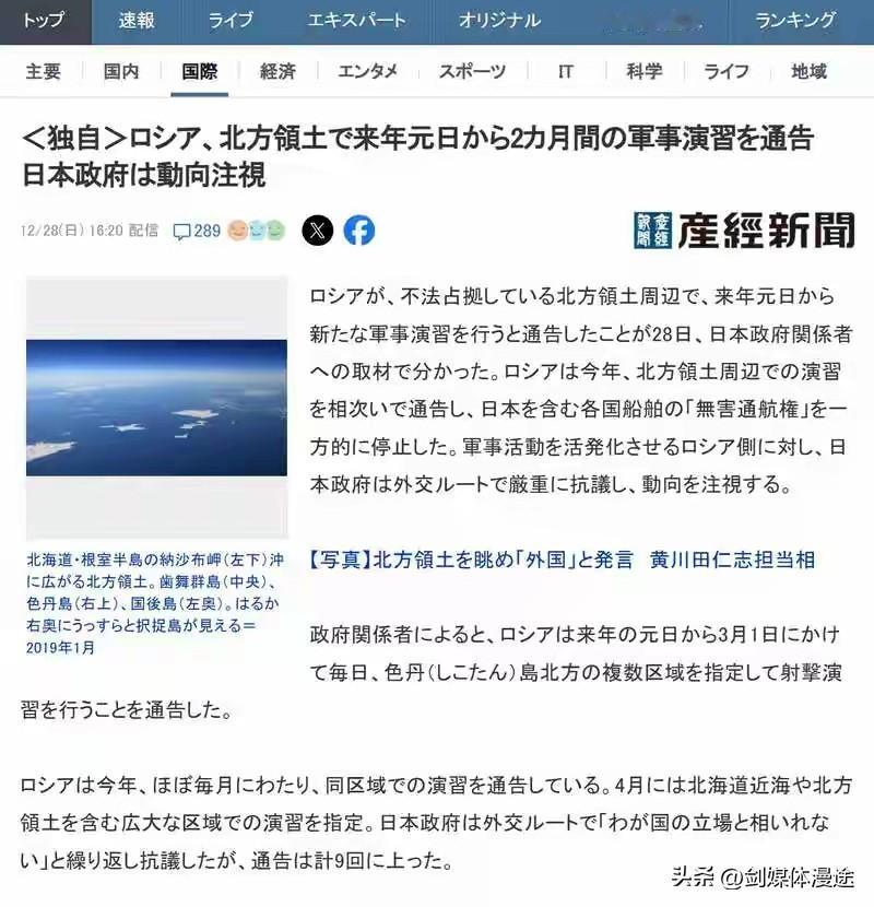 俄罗斯 2 个月的南千群岛军演,让日本慌了,日本抗议无效! 日本将整国的军事力基都倾向于西方诸岛,特别是在琉球群岛部署了美军及日本自卫队的主要军事力量,这也是日本为配合美国第一岛链战略的需求。 而对于日本北方来说,军事力量相对来说是弱态的,日本在北方四岛(俄罗斯称南千岛群岛)地区的军事力量部署主要由日本自卫队负责,其常规军事能力在局部海域具有一定优势,但整体上受限于和平宪法和美日安保体系,缺乏对俄本土实施进攻的手段。‌‌ 而俄罗斯可利用伊斯坎德尔-M导弹、图-160战略轰炸机等优势实施首轮饱和攻击,瘫痪日本防空系统,而日本缺乏有效还手能力。‌ 而对于北方四岛来说,日本始终认为领土属于日本,而俄罗斯在二战之后就成功将北方四岛纳入了俄罗斯领土,这也是二战胜利成果的重要标志!‌1945年雅尔塔会议后‌:根据《雅尔塔协定》,‌千岛群岛(包括北方四岛)的控制权移交苏联‌;同年8月,苏联军队占领北方四岛,‌日本战败后正式丧失主权‌‌。 而至令俄罗斯与日本未签订和平协议,所以对于想尽办法要要回北方四岛的日本来说,更是难上加难! 而俄乌冲突之后,日本更是按北约的要求 加入了制裁俄罗斯的队伍之中,然而俄罗斯也对日本的官员发起了制裁,并限制进入俄罗斯境内! 特别是在日要高市发出涉台危险言论并拒绝撤回言论之后,俄罗斯多次表示支持中国的国家统一,台湾问题是中国的内政,在 12 月 29 日俄罗斯外长拉夫罗夫更是表达:如果在台海危机的过程中,俄罗斯将为中国提供必要的支持! 所以俄罗斯正值中国东部战区在进行“正义使命-2025”军事演习之际,宣布在南千群岛进行 2 个月军事训练,更是有力的回击了日本否认二战胜利果实及破坏二战后建立的国际秩序,中俄在台海及南千群岛的军演 更是携手共同维护二战胜利成果与国际秩序!