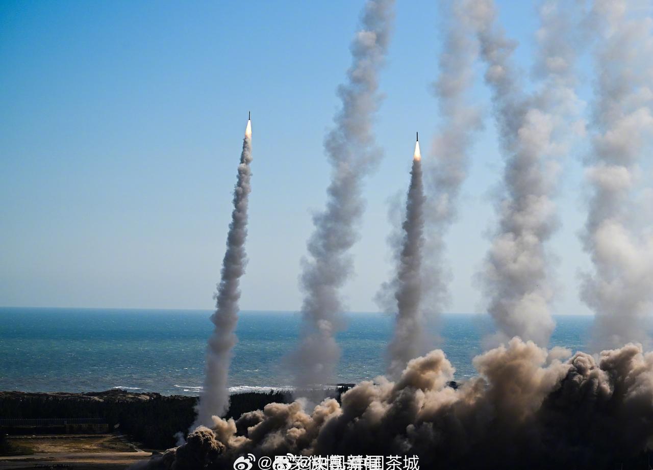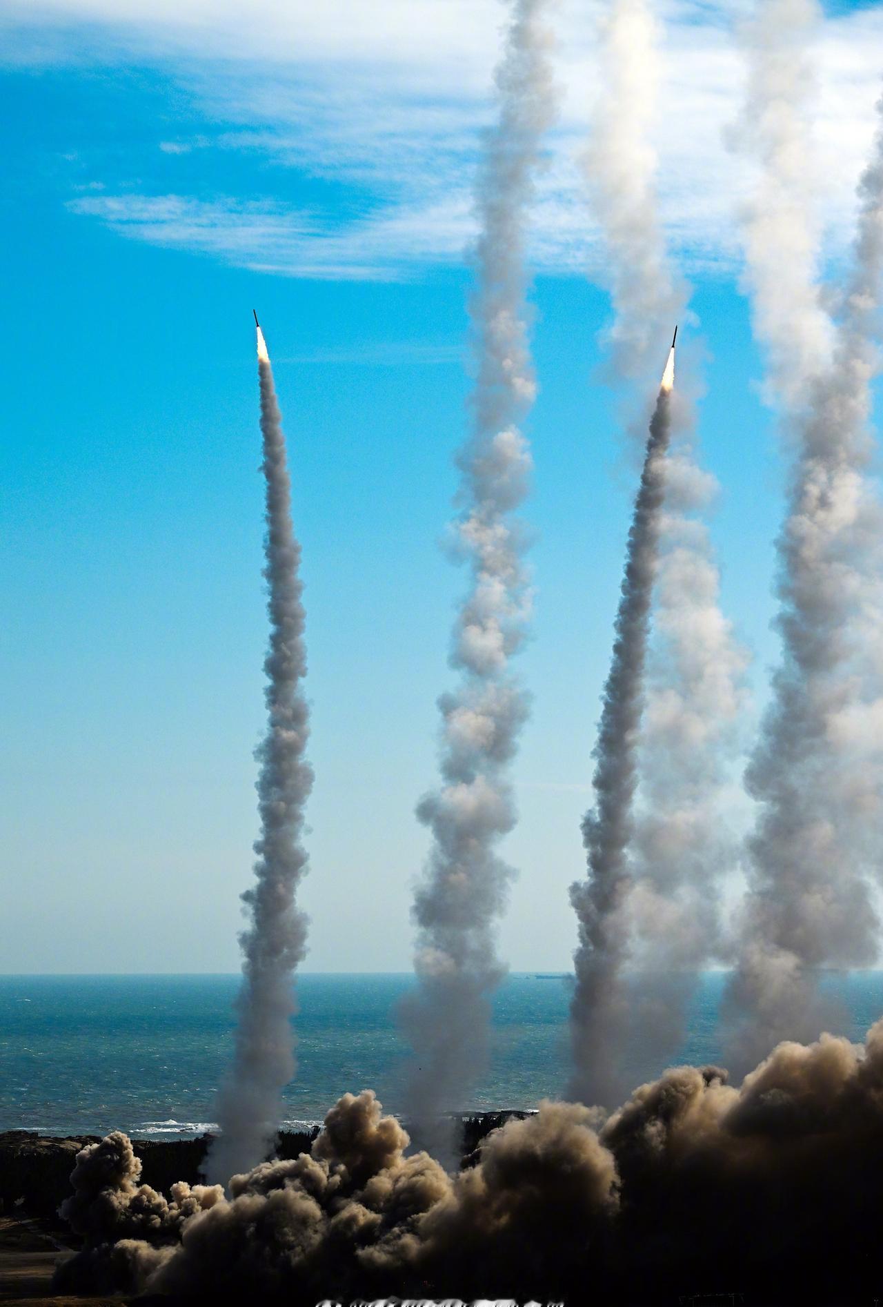 【转发!解放军出图】火箭弹射向台岛海域高清大图 12月30日,中国人民解放军东部