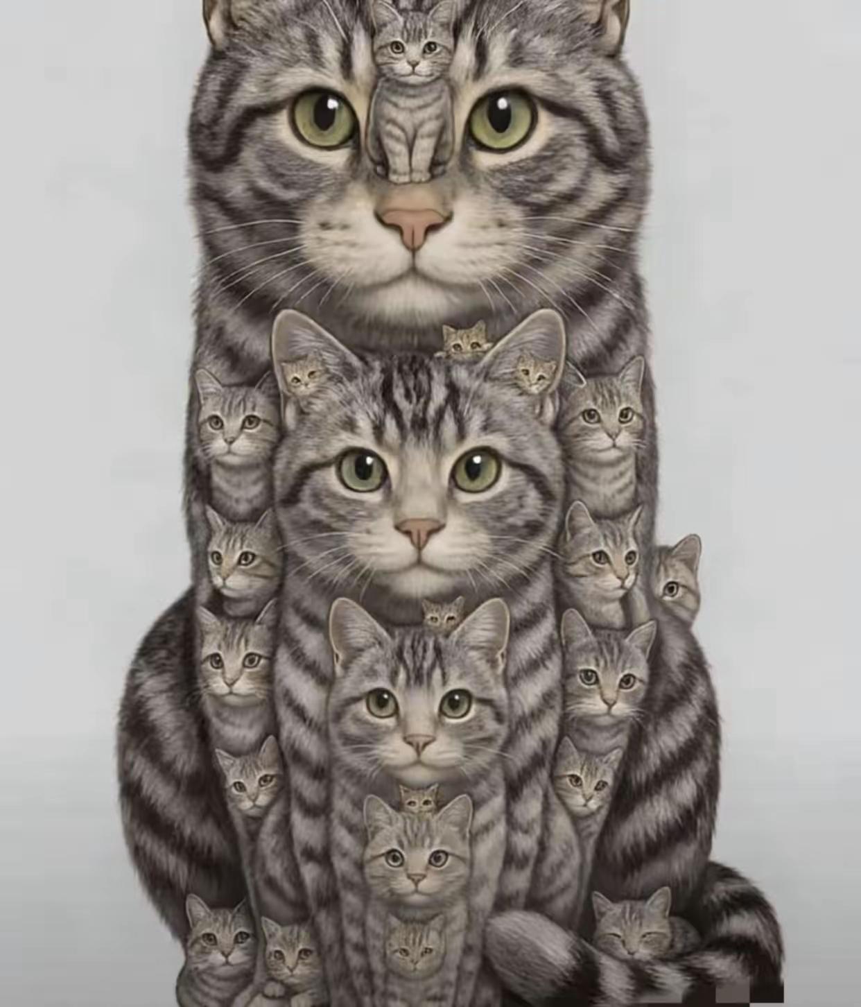 听说有密集恐惧症的人怎么也数不清?能一次就数清的人不足10%,此类人视觉观察力、细节分辨能力和专注力都是一流! 我数了三遍,都是23只狸花猫,后面又数了好几遍是24只,不知道对不对?大家数一下一共有多少只?