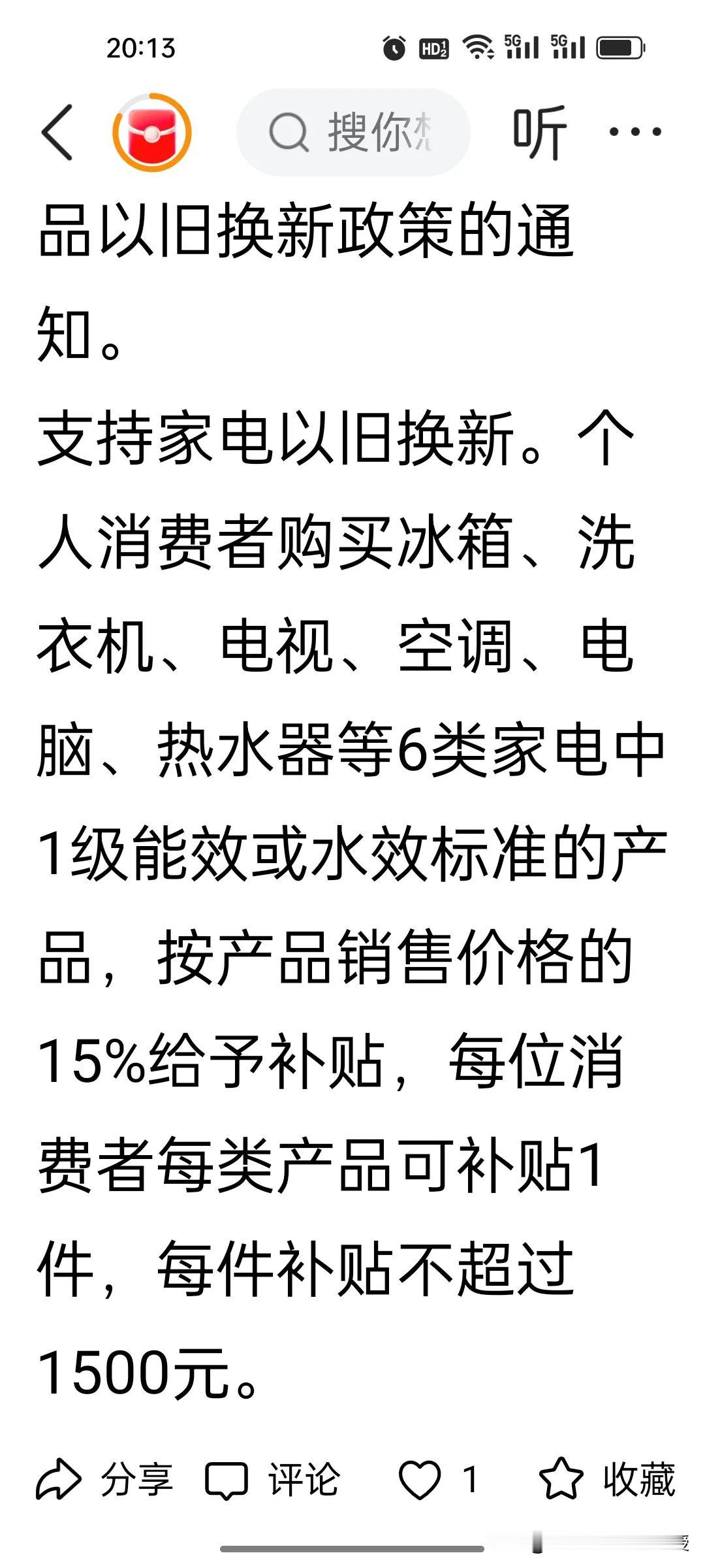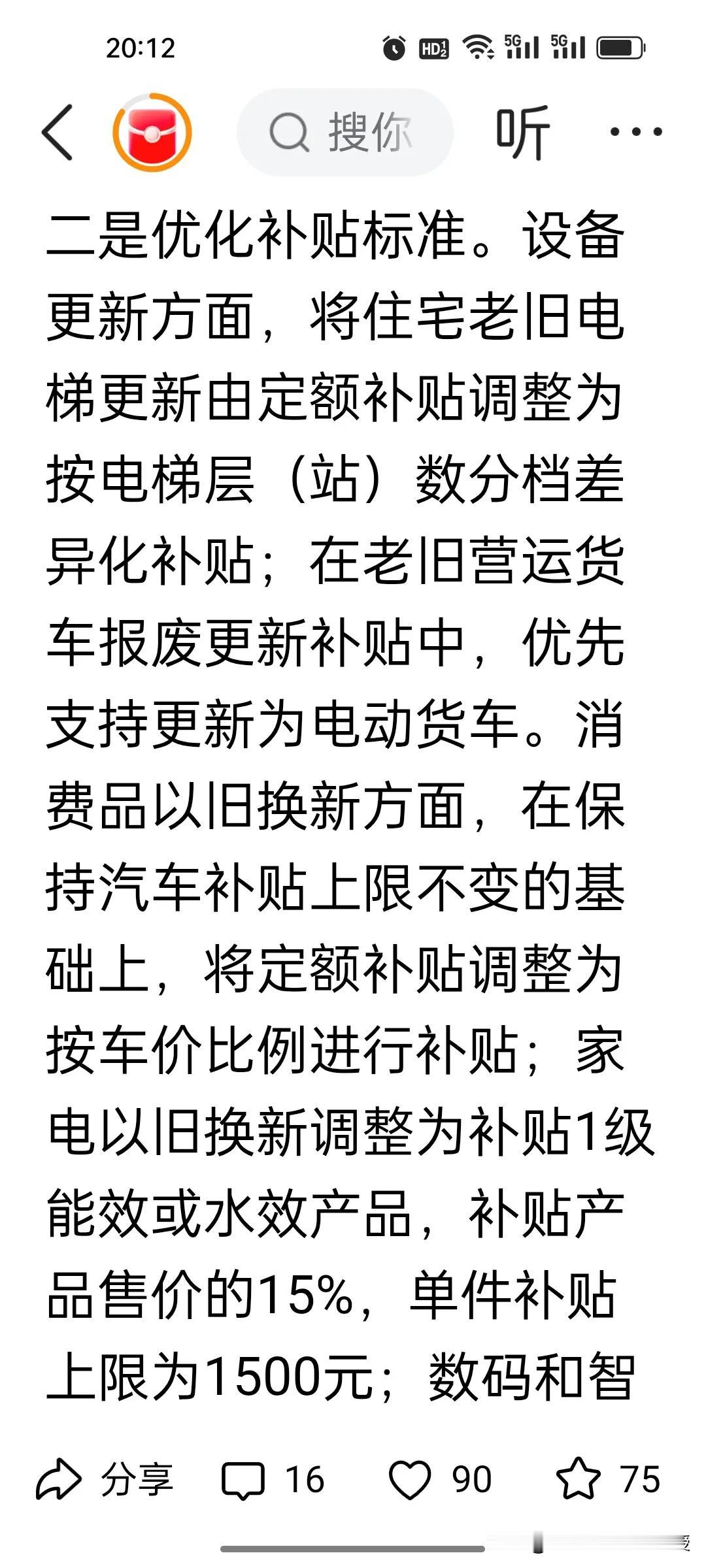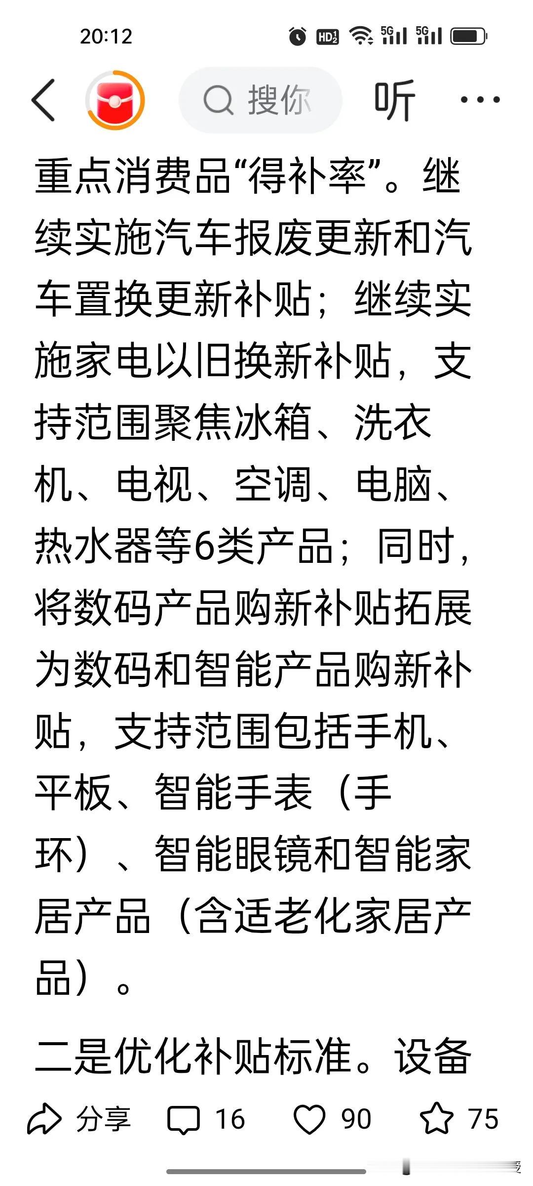 刚发布的2026国补精准发力,三大新意太懂老百姓的需求! 当前首批625亿元超长期特别国债已下达,全年规模预计达5000亿元,较2025年3000亿元大增约67%,补贴范围全面扩大,预计可带动消费超2.5万亿元,直接拉动GDP增长约1个百分点,这真的是真金白银精准滴灌! 三大硬核新意: 1. 智能眼镜首入补贴,数码智能类扩至5类,单件最高补500元; 2. 汽车以旧换新改按车价比例补,新能源最高补2万; 3. 家电只补1级能效/水效,按售价15%补,单件封顶1500元。 很多专家建议国补要扩大范围,这次确实做到了,今年这份国补既有硬核红利的力度,又有精准施策的巧思,既温暖了百姓消费的心,又给了产业升级的信心,为扩大内需,增强消费奠定了坚实的基础,实在是惠民利企的好政策!