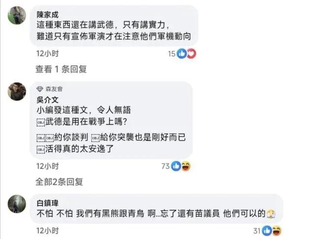 围台军演两天的破防大戏!解放军就两天操作,直接把岛内“台独”整不会了。头天刚过,绿营媒体就急得跳脚骂“不讲武德”——早晨7点半官宣演习,8点正式开场,结果凌晨战机就巡台海周边了,难不成打仗还得按朝九晚五、周末双休的规矩来?这简直是职场打卡的荒诞版! 赖清德更会演,30号在社媒装可怜,说大陆“不是负责任大国”,吹嘘民进党“不升高冲突、不挑起争端”,末了还感谢台军是“冠军”。这操作,跟先动手打人再喊“别还手”有啥区别?岛内民众可不惯着,评论区直接炸锅!有人骂民进党拿2300万人陪葬,还有人反讽让绿营的青鸟黑熊别耍嘴皮子,上战场试试! 最扎心的是那条神评论:“大陆确实没学‘大国所为’——美国一言不合就开战,解放军却保持克制。要是真学美国,赖清德现在脑袋早搬家了!”这话够狠,道理却透亮——解放军的克制是给和平留路,“台独”却揣着明白装糊涂,把克制当怂,脸皮厚得能挡子弹! 谁在搞事、谁在演戏,老百姓心里跟明镜似的。统一是大势,挑衅没有好果子吃!咱搬好马扎,坐等这出破防大戏的结局——统一的车轱辘已经转起来,谁也别想当拦路虎!