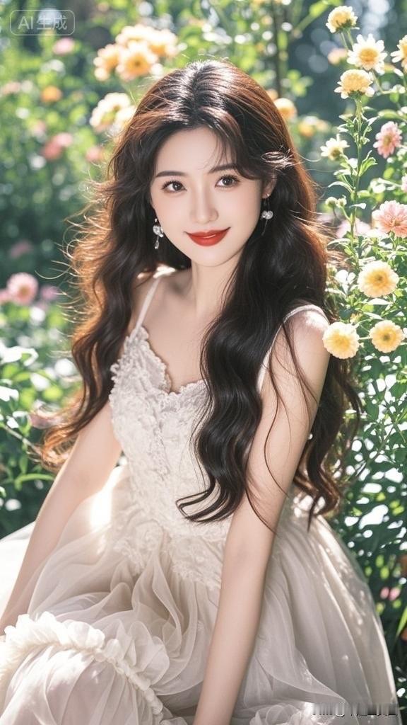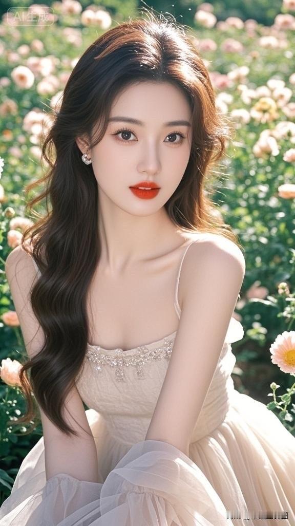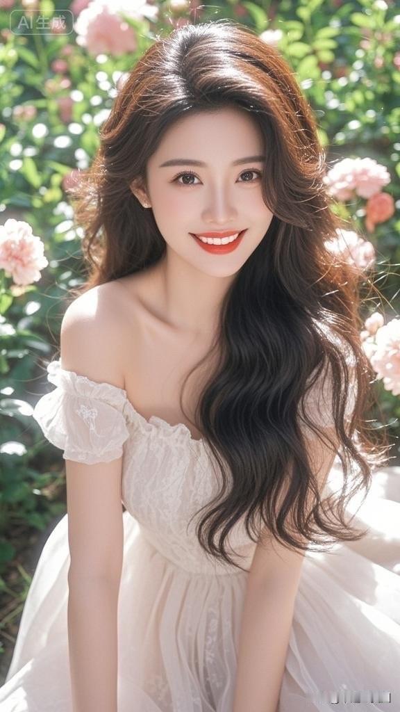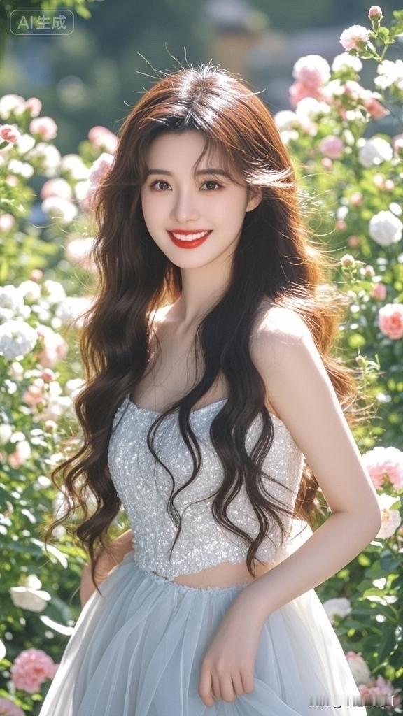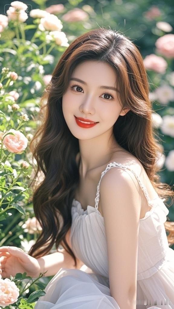 在玫瑰花园中,温柔微笑的少女与红玫瑰相映成趣,浪漫气息扑面而来。🌹💕