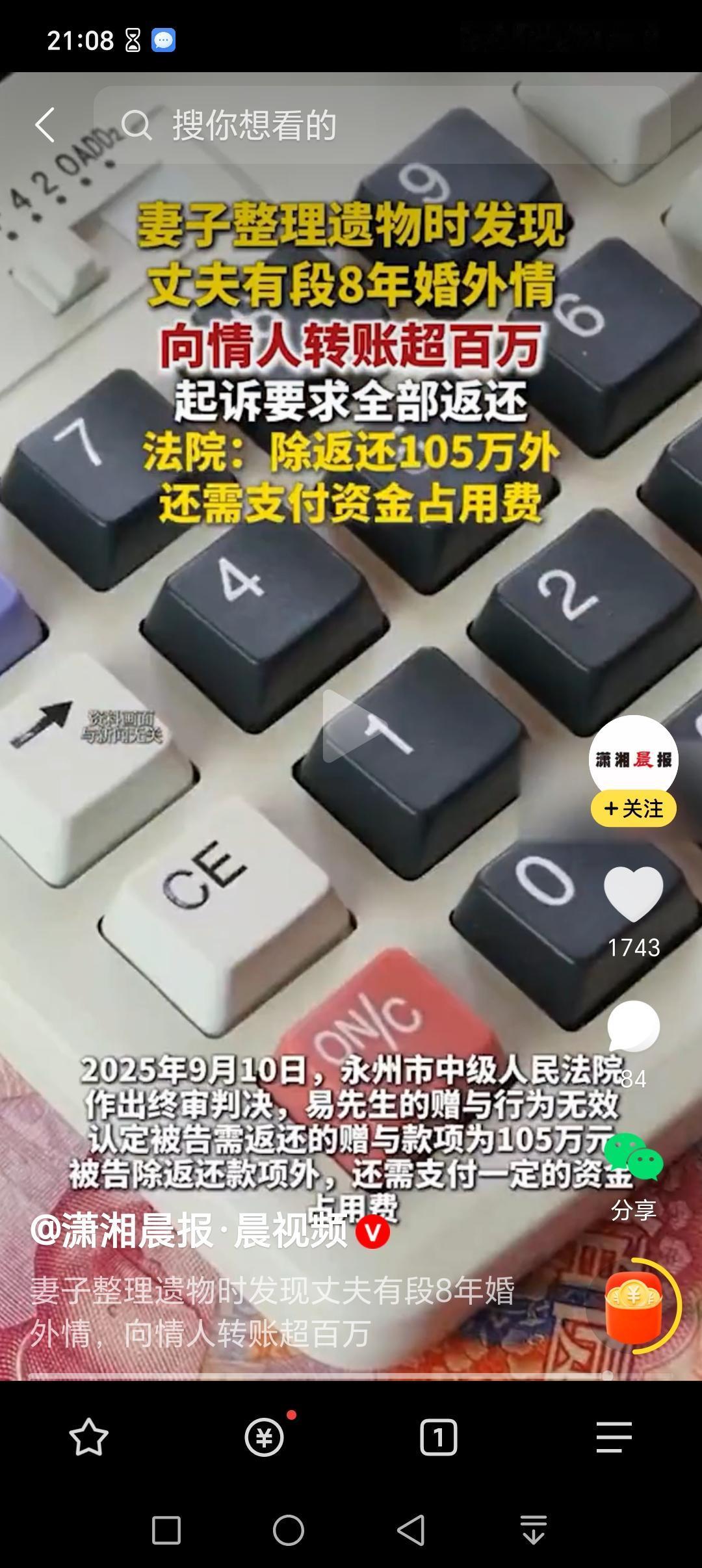 你看这做“小三”的,罪不好受啊! 遭人冷眼、唾弃不说,拿了人家的钱得如数退还。钱退了,还得支付一定的资金占用费。你说,这做小三的,图到了啥? 妻子整理丈夫遗物时,发现丈夫在婚内与一名女子有长达8年的婚外情。8年中,丈夫向情人转账超百万。 妻子向法院起诉要求该名女子全部返还。 女子认为是死者生前赠予她的,不愿退还。法院依法判决:赠予无效,认定被告退还赠予款项105万元,并支付一定的资金占用费。 你看,白白被人玩弄了8年,最后还落得个人财两空。 这做小三的,值吗?也该醒醒了! 内容来源:潇湘晨报·晨视频,侵通知必删!