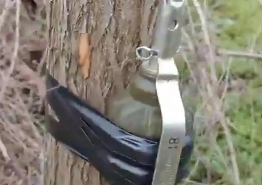 为了延缓俄军的推进,乌军一直在其阵地附近布雷。有意思的是,乌军士兵在网上互相分享设置反步兵地雷,尤其是诡雷的方法,其中绊发雷是乌军士兵交流和布设最广泛的反步兵诡雷之一。 其中一人在网上详细描述了乌军士兵如何用手榴弹设置诡雷。具体来说,就是将三枚手榴弹间隔一定距离放置(用胶带固定在树干上),然后用钓鱼线系在三枚手榴弹的引信拉环上,并且钓鱼线在三枚手榴弹之间彼此连接。此外,一些乌军士兵还建议把手榴弹和OZM-72反步兵跳雷(又称“青蛙”)混合设置,组成“花环”。 更有意思的是,讲述如何设置反步兵诡雷的这位乌军士兵还讲了如何防范这类诡地雷——如果发现绊线,必须检查两端。此外,还要注意可能存在的压发地雷和隐藏在手榴弹下的诡雷。#俄乌冲突#