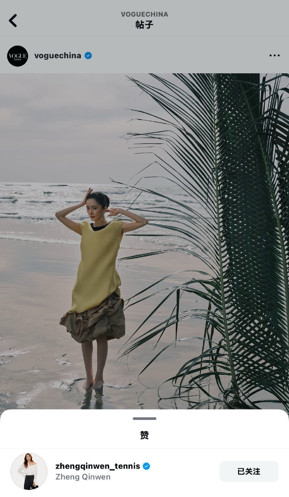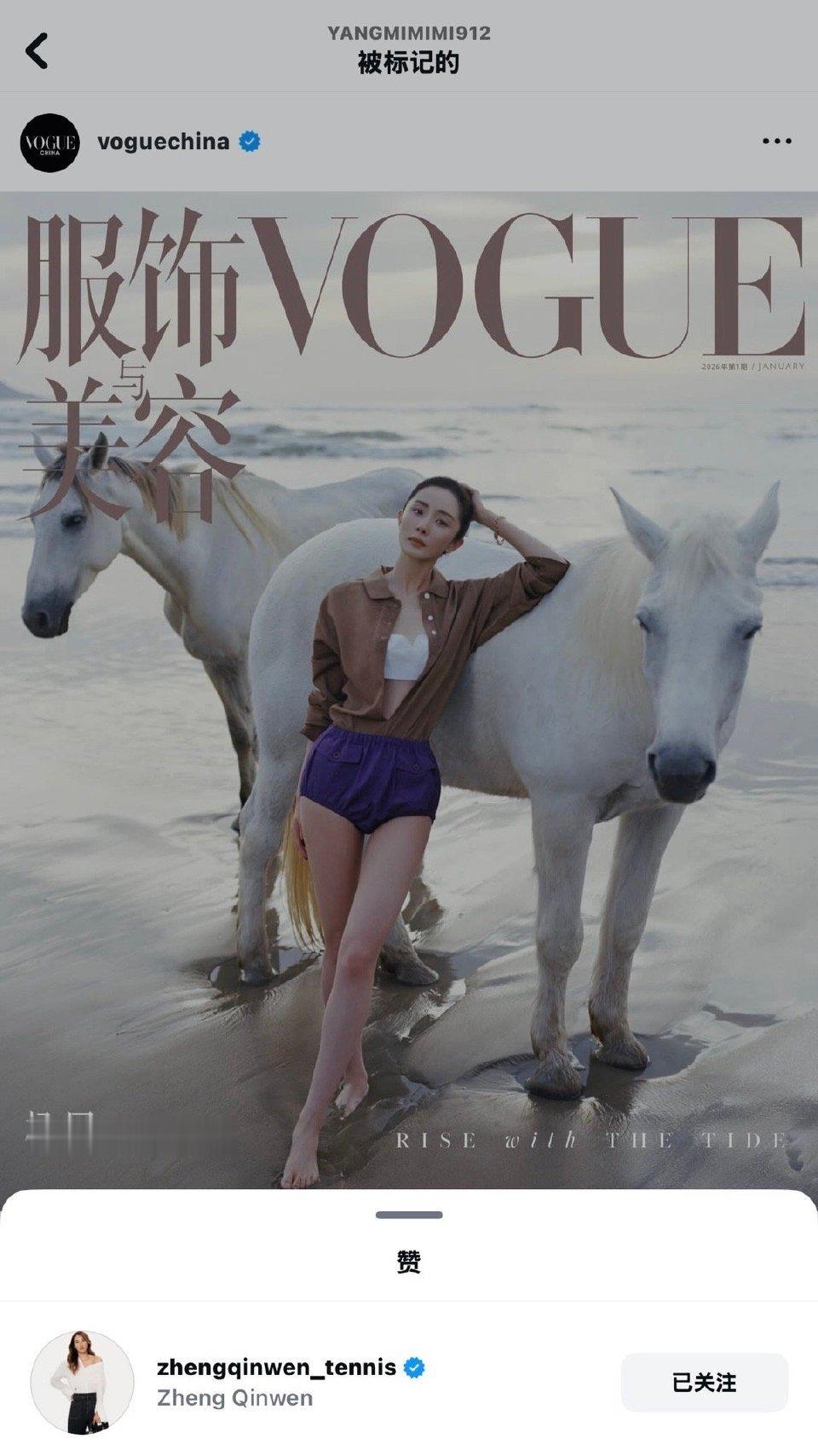郑钦文连赞杨幂VOGUE郑钦文连赞杨幂VOGUE开年刊大女人们的联动