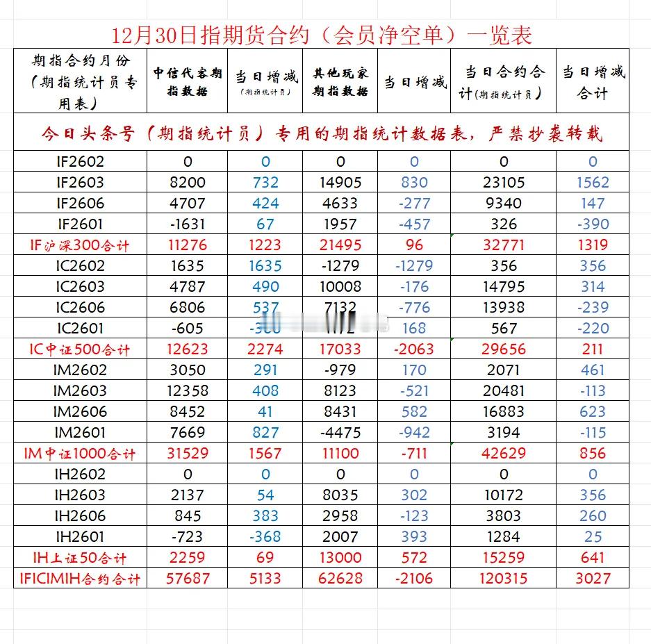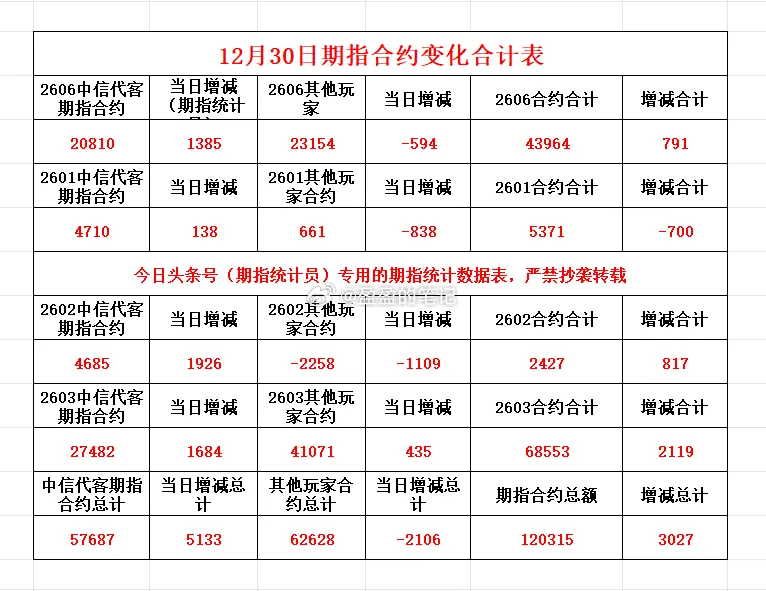 上跳下窜继续诱多,大幅加空重回高位-30日期指数据及大盘概述 上证今天下跌0.16点收于3965点,深证上涨67点收于13604点,两市成交21612亿元同比上个交易日放量36亿元,大盘资金净流出450亿元,两市1840只股票上涨3480只股票下跌。期指主力大幅加空3027手净空单(不及预期),股指期货净空单总计120315手,其中: 中信代客期指主力(57687手净空单)--今日加空5133手:IF沪深300期货加空1223手,余净空单11276手;IC中证500期货加空2274手 ,余净空单12623手;IM中证1000期货加空1567手,余净空单31529手;IH上证50期货加空69手,余净空单2259手。 其他玩家(62628手净空单)--今日减空2106手:IF沪深300期货加空96手,余净空单21495手;IC中证500期货减空2063手,余净空单17033手;IM中证1000期货减空711手,余净空单11100手;IH上证50期货加空572手,余净空单13000手。 今日大盘窄幅震荡而期指主力大幅加空3027手净空单,加空幅度远超相应指数涨幅值得警惕。期指总额12.03万手(最高13.53万手)重回高位。大盘在3950至3980之间上跳下窜窄幅震荡三连阳收盘指数基本不变而期指总额也在12万手附近居高不下且机构分歧明显加大,期指主力做空坚决做空筹码一直未发生根本性逆转。加上大盘连续冲高回落四千附近压力明显,短期大盘继续调整概率大,明日大盘冲高回落继续诱多,不能放量突破3983就要十点逢高减仓降低仓位,谨防节后大幅调整风险。激进的投资者可以在20日线3905之上高抛低吸持股待涨,谨慎的投资者可以以5日线的得失为止盈位置。 特别声明:本人仅此一号,文中观点仅供参考、据此投资风险自负,如有同感请多点赞评论!