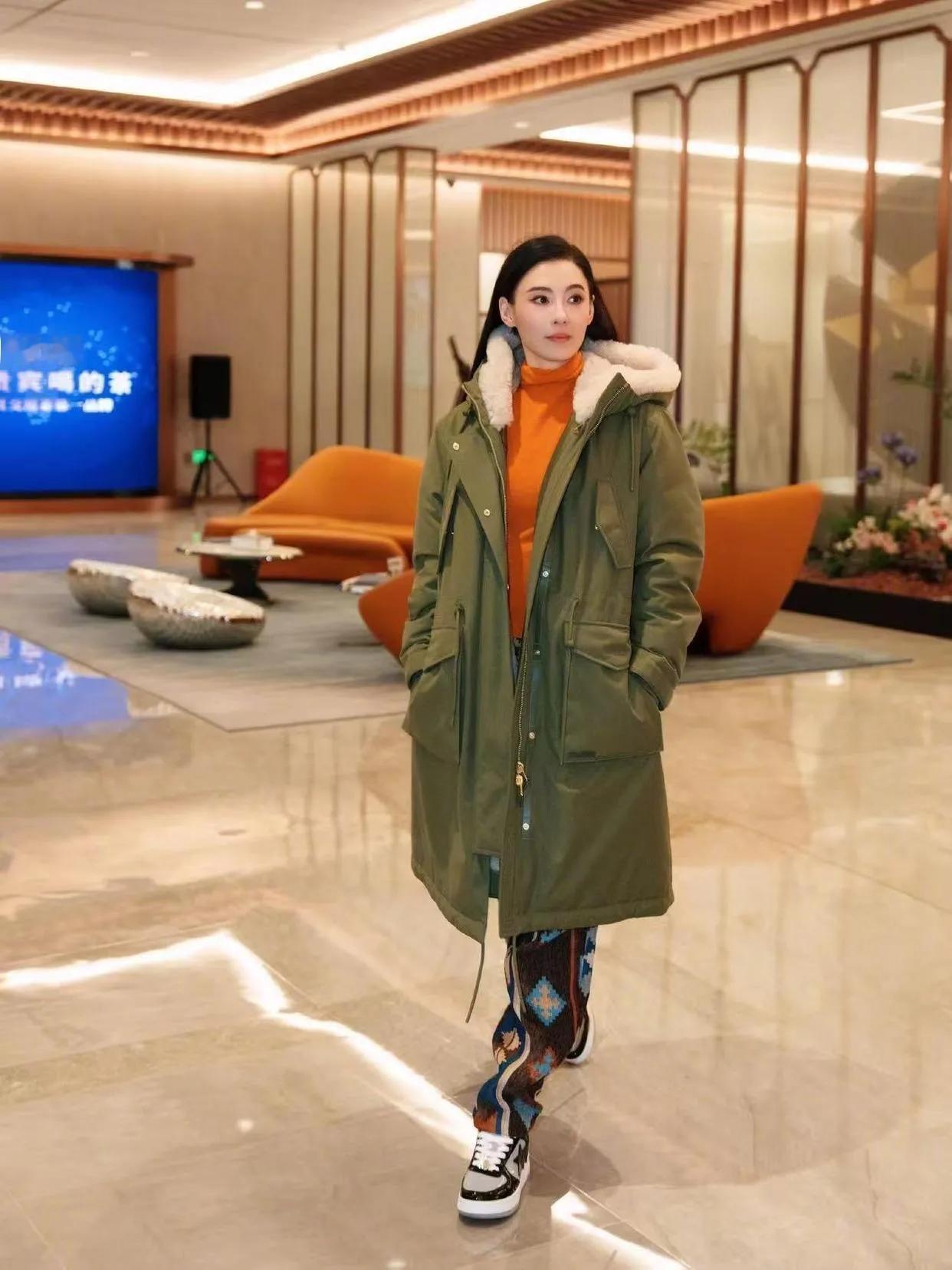 张柏芝的冬日穿搭太亮眼!军绿派克大衣配亮橙内搭,时髦又有活力 张柏芝的冬日穿搭也太会玩色彩了吧!一件军绿色长款派克大衣,毛领设计温暖又大气,宽松的版型藏肉又随性,妥妥的冬日氛围感穿搭。